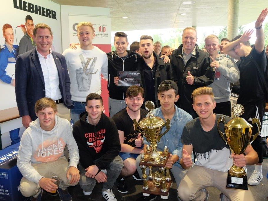 17 Lehrlingsmannschaften aus dem Ländle (z.B. Getzner, Blum, Grass, Collini, ÖBB, Hilti,…usw) kämpften um die tollen Pokale und Sachpreise. Neben Fußball stand auch Fair Play und Geselligkeit unter den Lehrlingen im Blickpunkt. Nach einem spannenden Endspiel setzten sich die Lehrlinge von LIEBHERR gegen die Lehrlinge von Grass knapp mit 1:0 durch und gewannen zum 3 mal hintereinander das Turnier und somit auch endgültig den Wanderpokal. Bei der Preisverteilung bedankte sich OK Chef Reinhard Gantner bei allen Mannschaften,