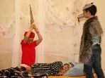 Und zum Schluss “erzählte” und spielte die Schulspielgruppe ein etwas anderes Märchen. “Der liebe Wolf und das böse Rotkäppchen”. Wer hat denn bislang schon von einem blutrünstigen Rotkäppchen gehört, das brave Wölfe zum Fressen gern hat? – Eben: Ein etwas anderes Märchen!