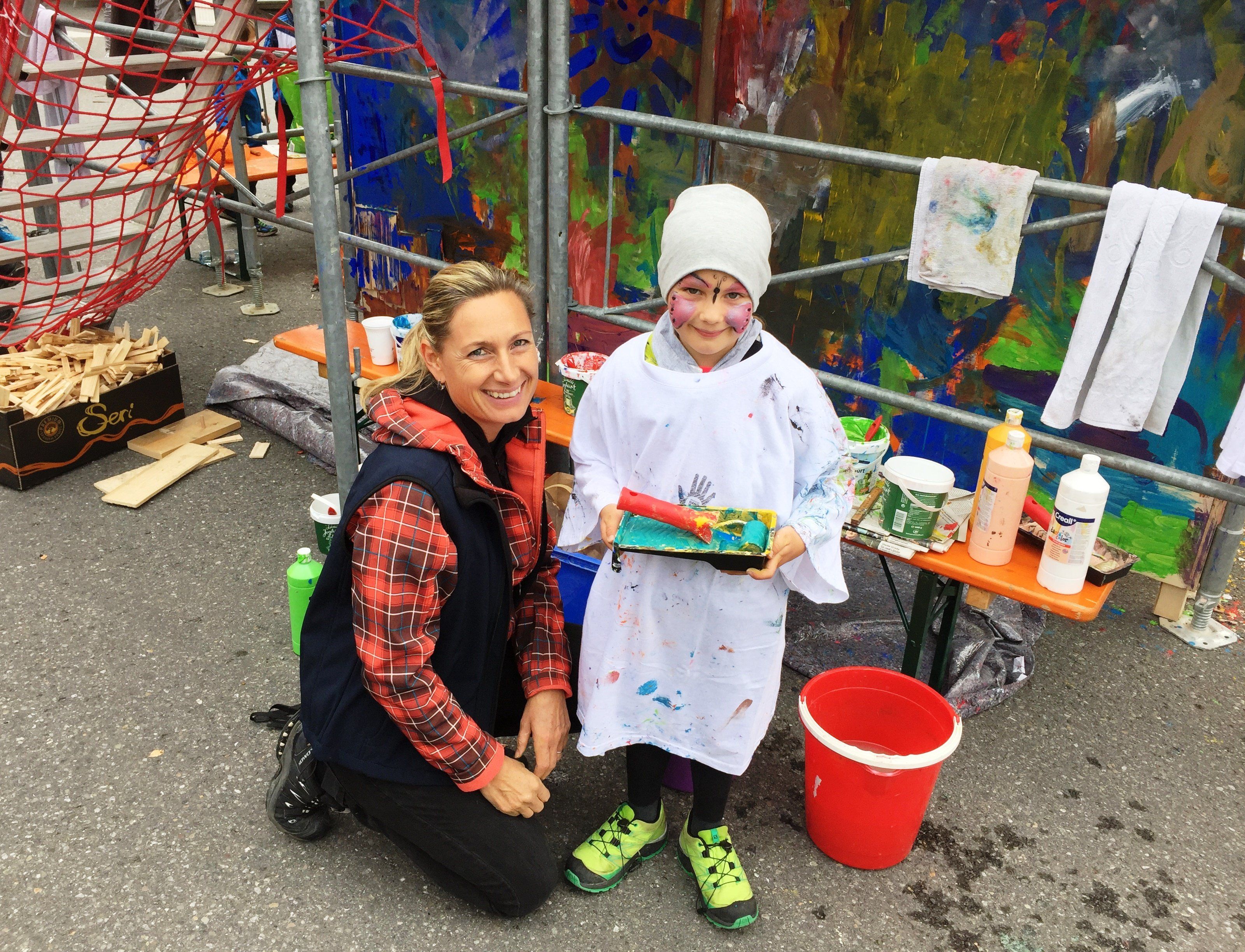 Die Kinderbaustelle war ein großes Experimentiergelände für alle, die einmal so richtig Hand anlegen wollten. Die zahlreichen tüchtigen Kinder durften mit Holz, Hämmer, Nägeln, Farben und vielem mehr arbeiten und ihren handwerklichen und kreativen Fähigkeiten freien Lauf lassen – natürlich mit Hilfe von fachkundiger Betreuung durch den Handwerkerverein Bezau, den LA-LE-LU-Verein und den Bezauer Familienverband. Die Kinder waren mit Feuereifer dabei: Nägel und Dübel in Holz zu hämmern war genial und einige Kinder entschieden sich spontan: „Ich will Handwerker werden“. Natürlich wurde beim Bau auch um die Wette gehämmert und im Nu stand ein wunderbares, von Kindern gestaltetes, sehr buntes Objekt.