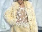 Es gab Eisbären-Look der Spitzenklasse: Cremeweiße Minikleider aus zartem Tüll, bestickt mit Perlen und mit einem weichen Fellrock versehen, lange Ledermäntel mit diagonal gesetzten Nähten und schwarzem Kontrastfell an den Kanten, weiche lange Jacken in dunklem Anthrazit, auf die dicke Wollkaros gesteppt waren, und Tweed in unglaublich kunstvollen Varianten. Ketten und Armbänder wirkten wie Eiszapfen, kleine Abendtaschen waren in Eisblockform gegossen.