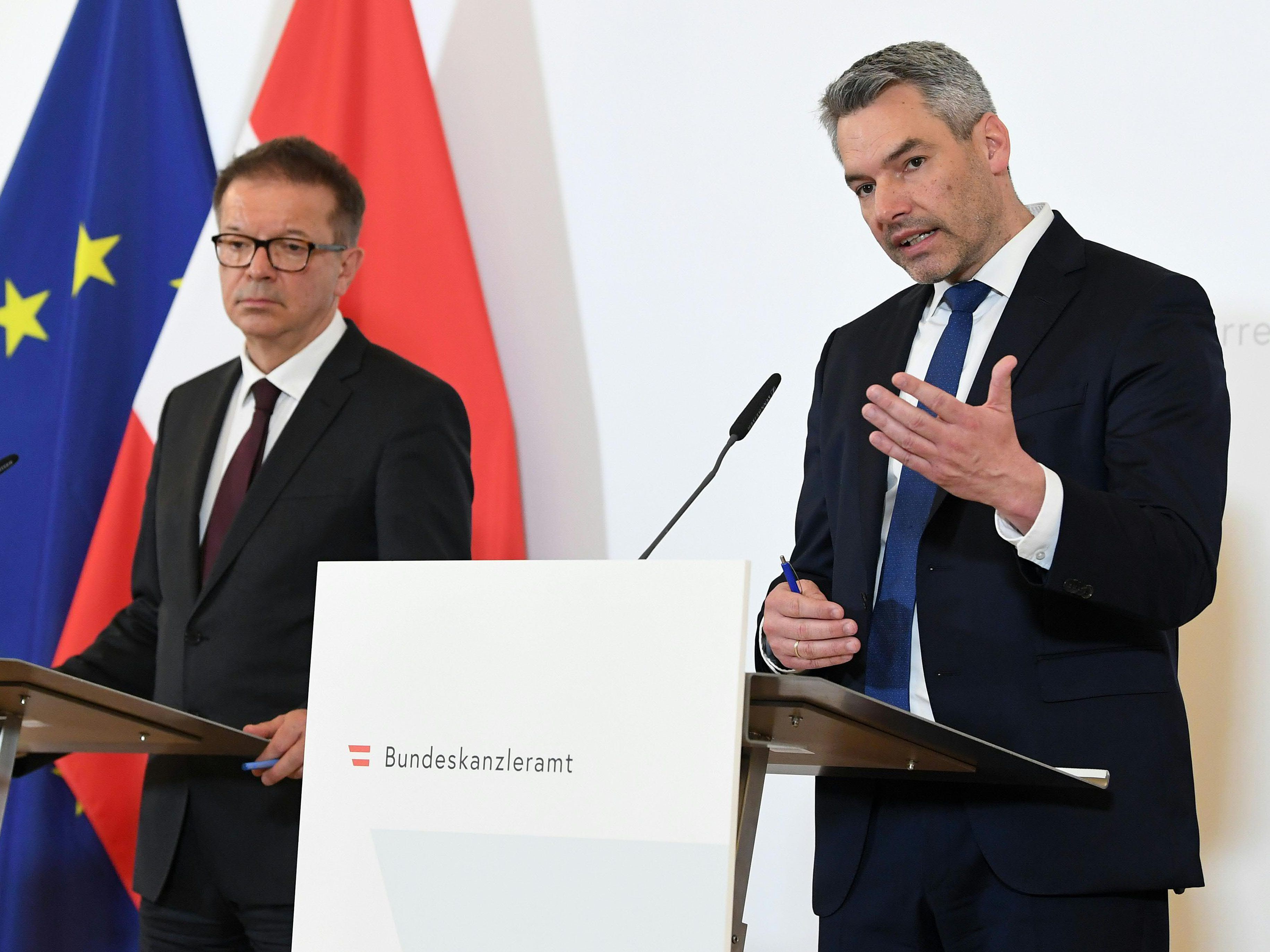 Auch Nehammer sprach von einem "dringenden Appell": "Die Ein-Meter-Sicherheitsregel ist nicht irgendeine, sondern die dringende Empfehlung der Gesundheits-Experten und Expertinnen, damit wir eine Chance haben, das Virus einzudämmen, damit ältere Menschen nicht sterben müssen."