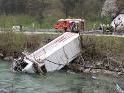 Kurz vor 14.00 Uhr war der Klein-Lkw auf der B25 im Bereich Kienberg in einer langgezogenen Rechtskurve auf die Gegenfahrbahn geraten und seitlich gegen einen entgegenkommenden Sattelschlepper geprallt. Der Klein-Lkw schleuderte nach dem Crash quer über die Fahrbahn und stürzte über die Böschung des Flusses. Schließlich landete das Fahrzeug mit der Front im Gewässer.