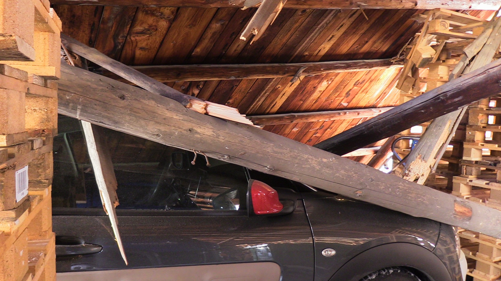 Die Schneemassen der vergangenen Tage wurden zu schwer: Ein Carport aus Holz stürzte am Dienstag in Lustenau unter der Last ein und beschädigte dabei zwei dort geparkte Fahrzeuge, einen Pkw und einen Lkw. Die Feuerwehr Lustenau rückte zur Bergung aus.