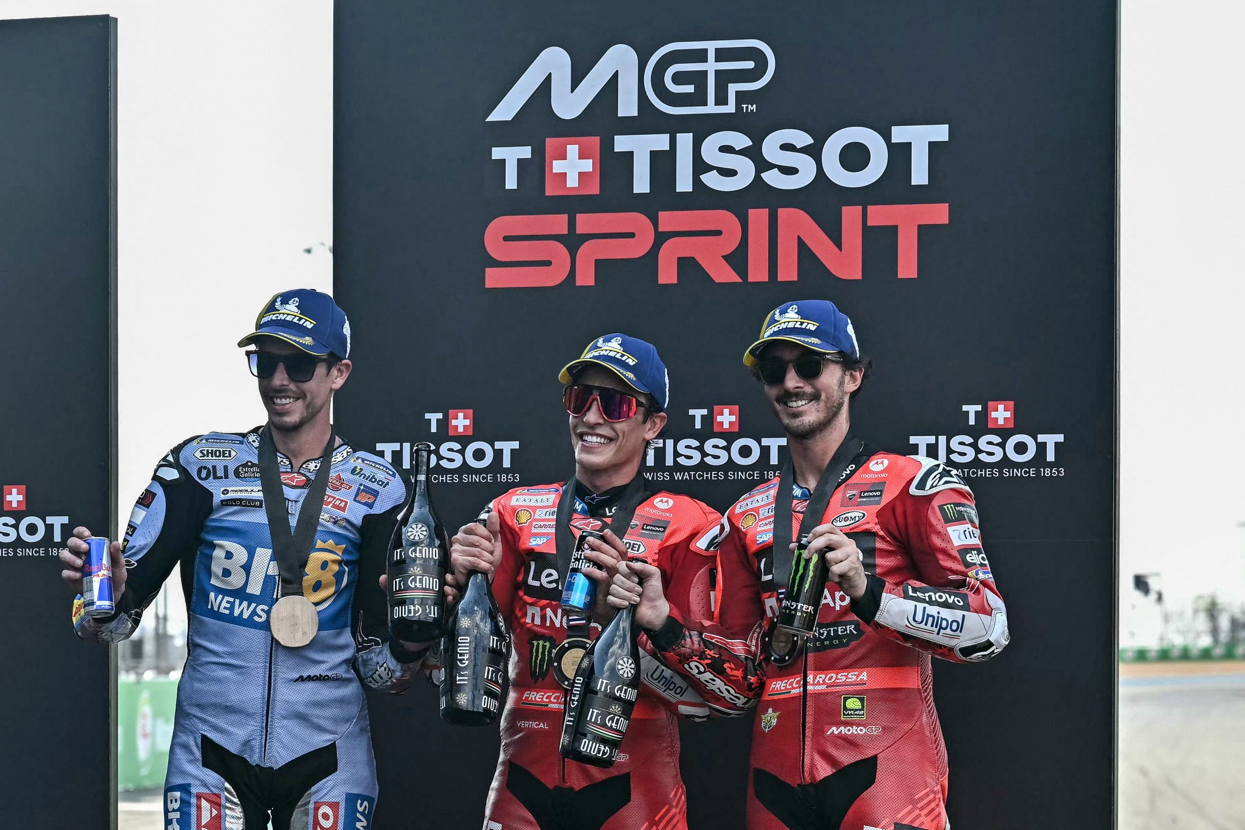 Marc Marquez holte sich den Sieg im Sprint vor seinem Bruder Alex und Pecco Bagnaia ©AFP