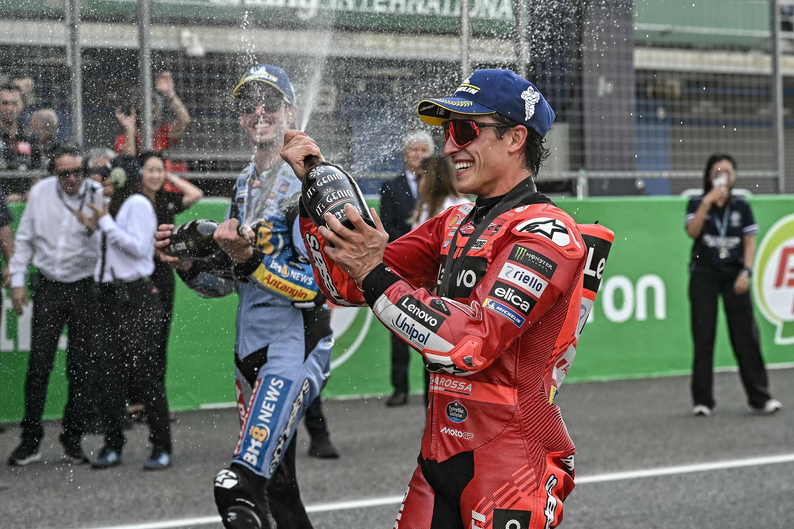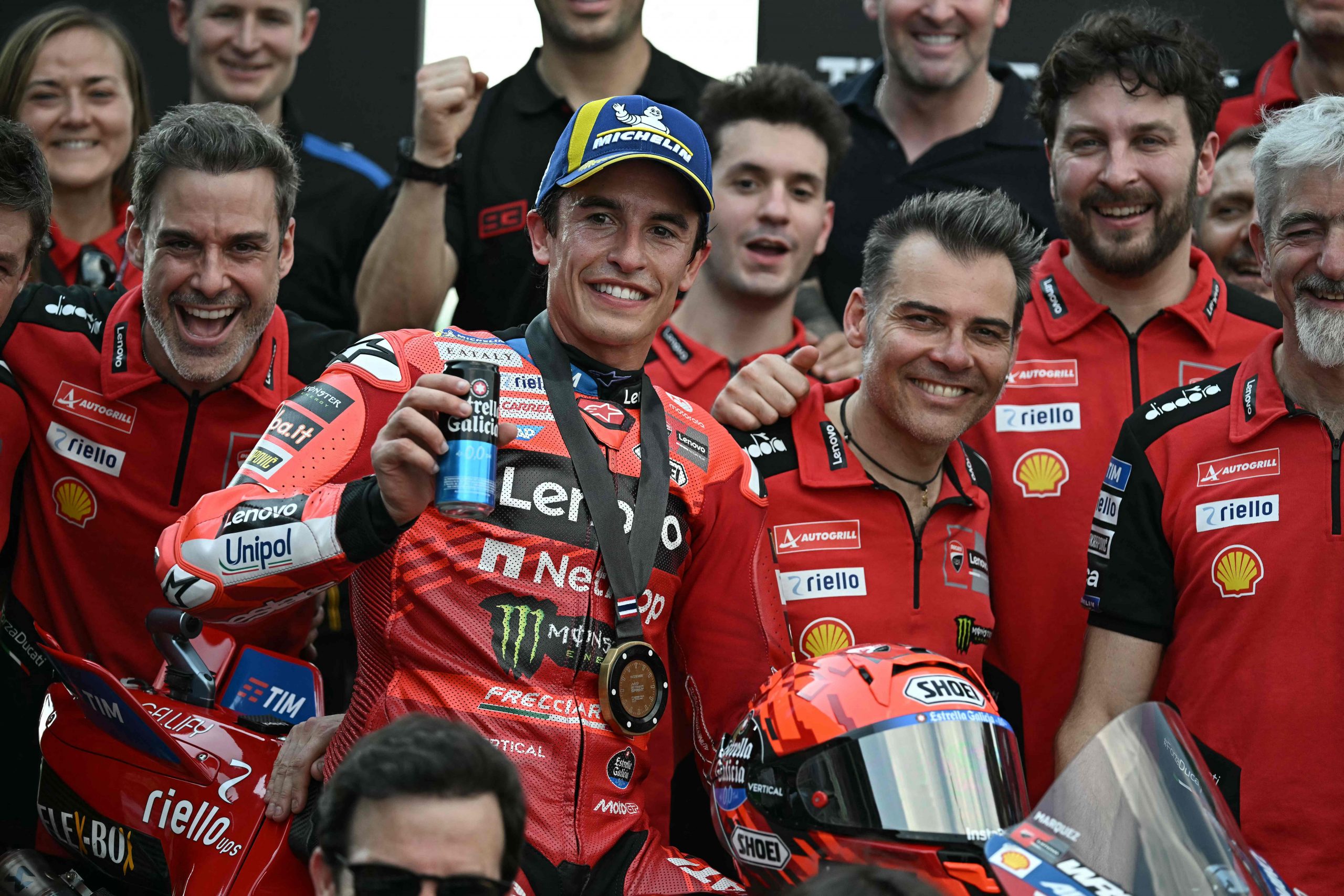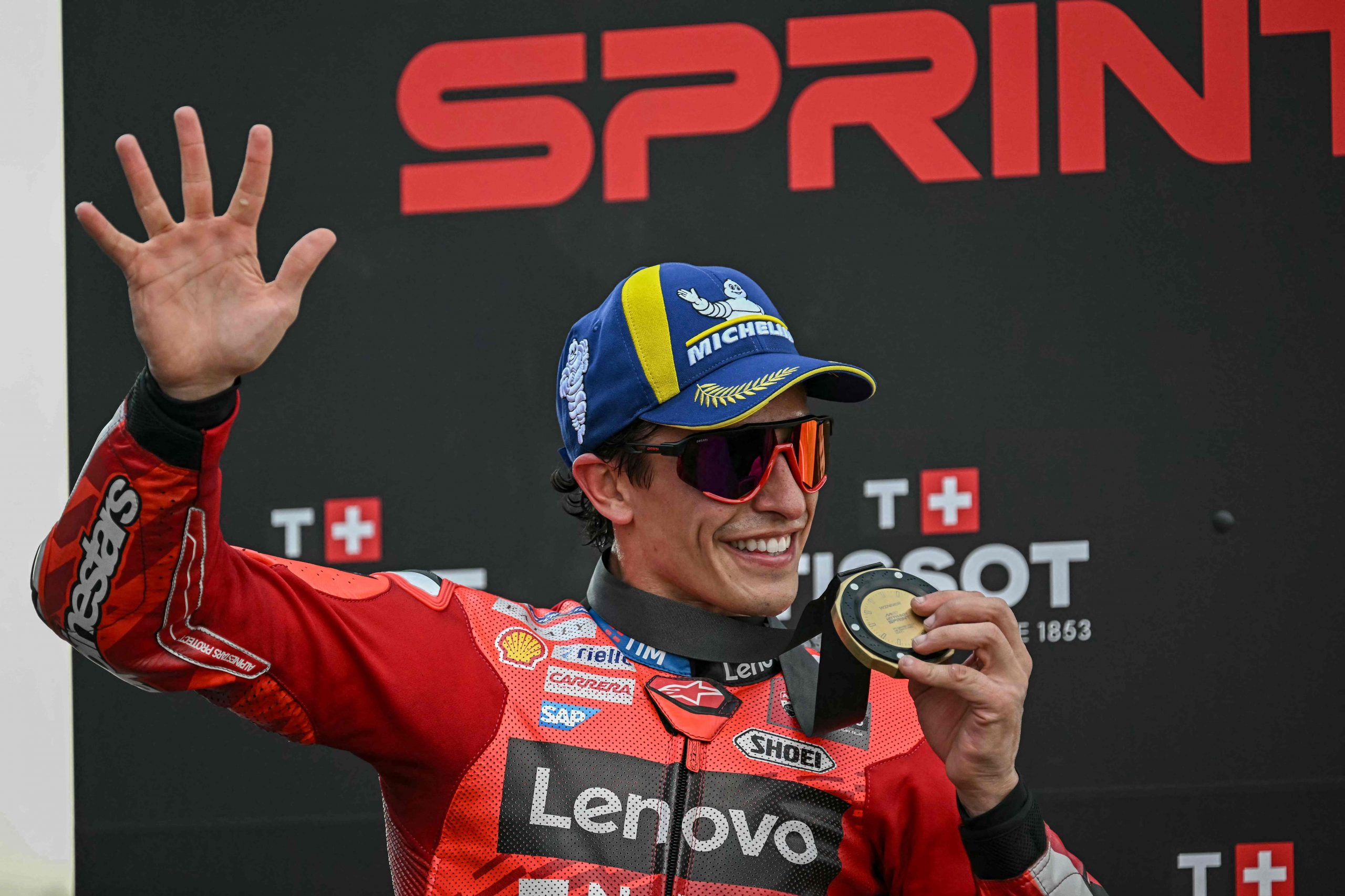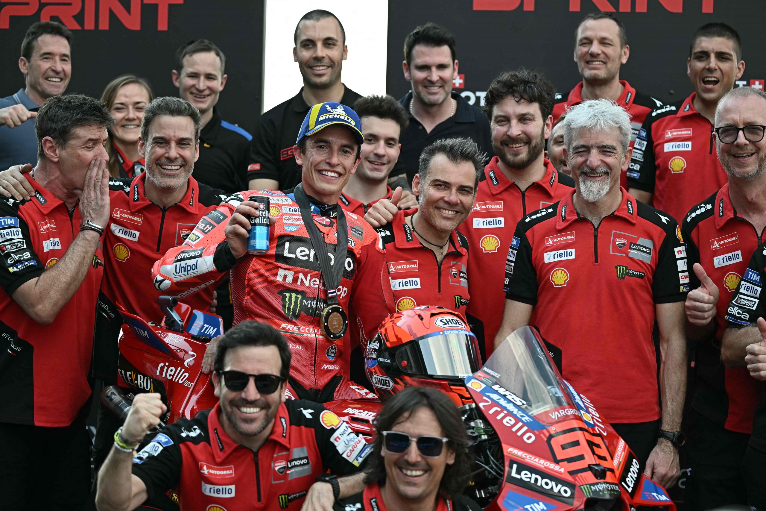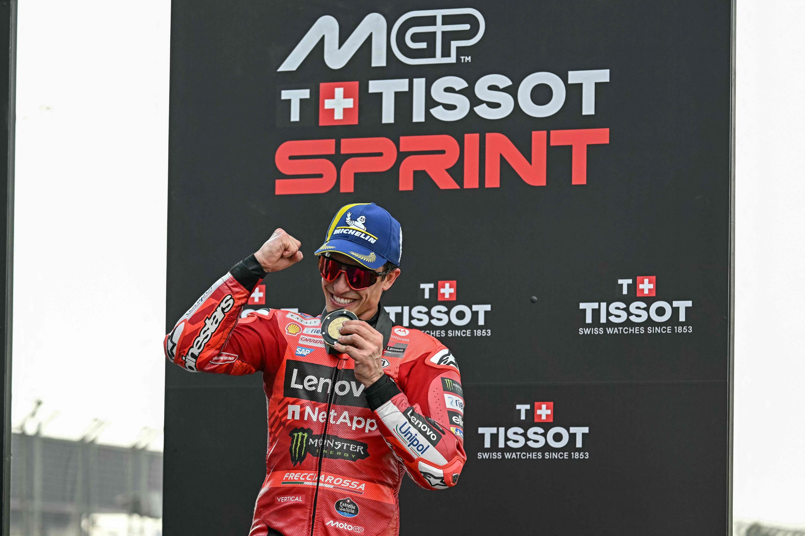Der Spanier feierte damit einen Traumeinstand auf Ducati. Der sechsfache MotoGP-Weltmeister gewann am Samstag vor seinem jüngeren Bruder Alex, Dritter wurde Marquez' neuer Teamkollege Francesco Bagnaia. "Das ist ein perfekter Samstag", sagte Marquez, der dank der eingefahrenen zwölf Zähler erstmals seit 2019 die WM-Führung übernahm.