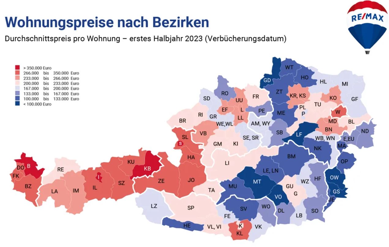 In Bregenz kostete eine Wohnung im Durchschnitt 378.666 Euro, was einem Anstieg von 2,6 Prozent im Vergleich zum Vorjahr entspricht. Damit bleibt Bregenz der zweitteuerste Bezirk außerhalb Wiens.