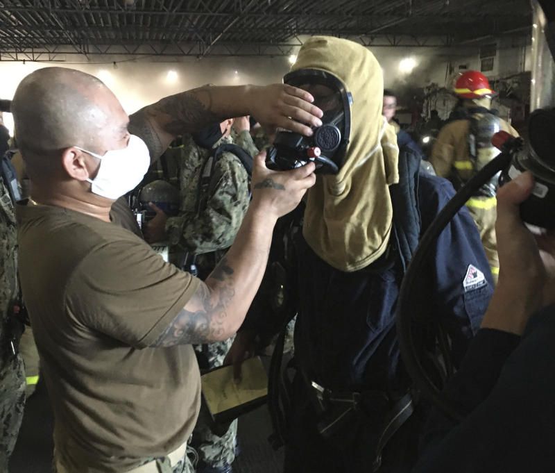 17 Seeleute und 4 Zivilisten seien mit "nicht lebensgefährlichen Verletzungen" ins Krankenhaus gekommen, sagte Sprecher Mike Raney am Sonntag. Weitere Details gab er zunächst nicht bekannt. Zuvor war mitgeteilt worden, dass mindestens eine Person wegen des Einatmens von Rauch behandelt wurde.
