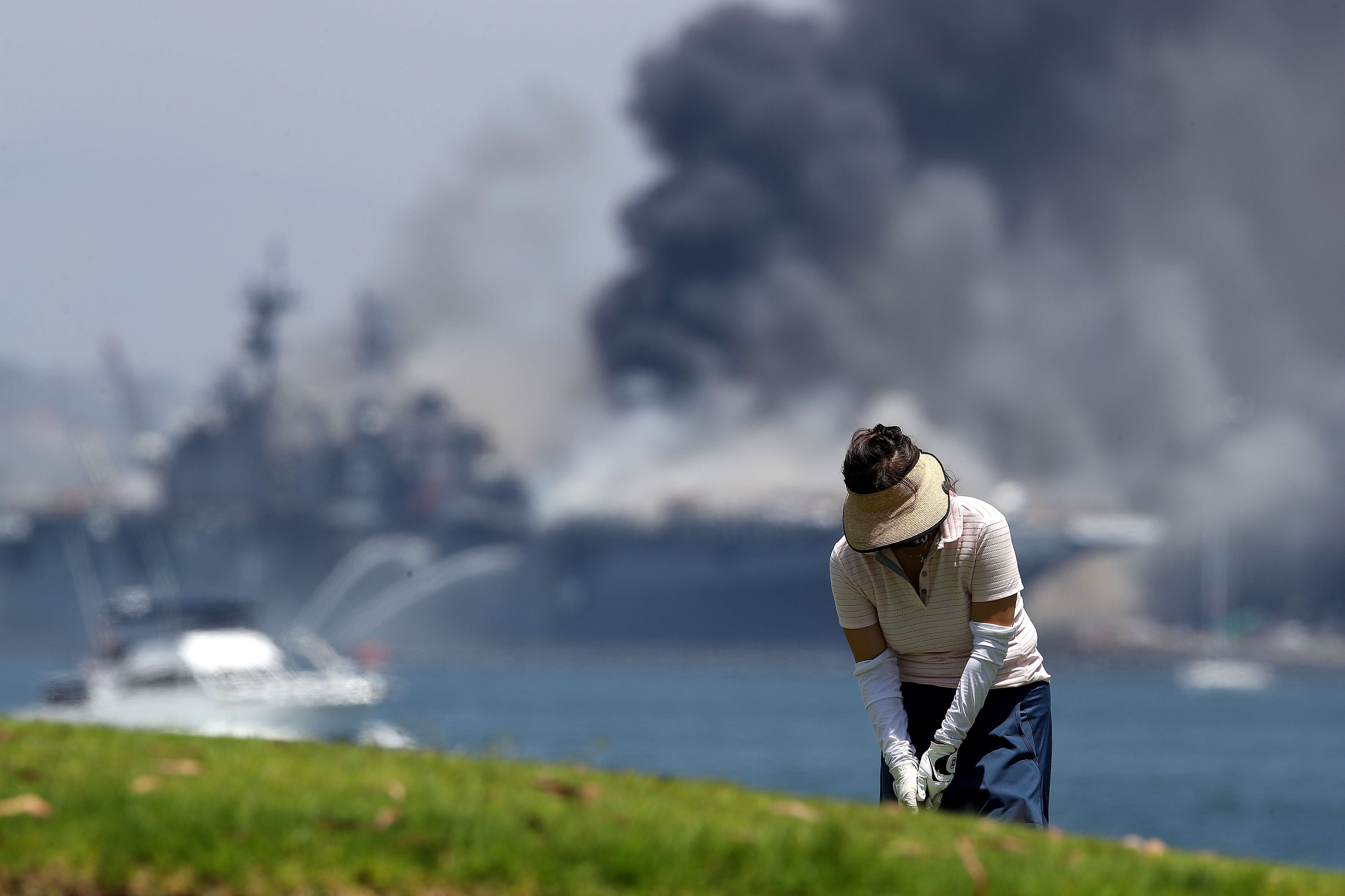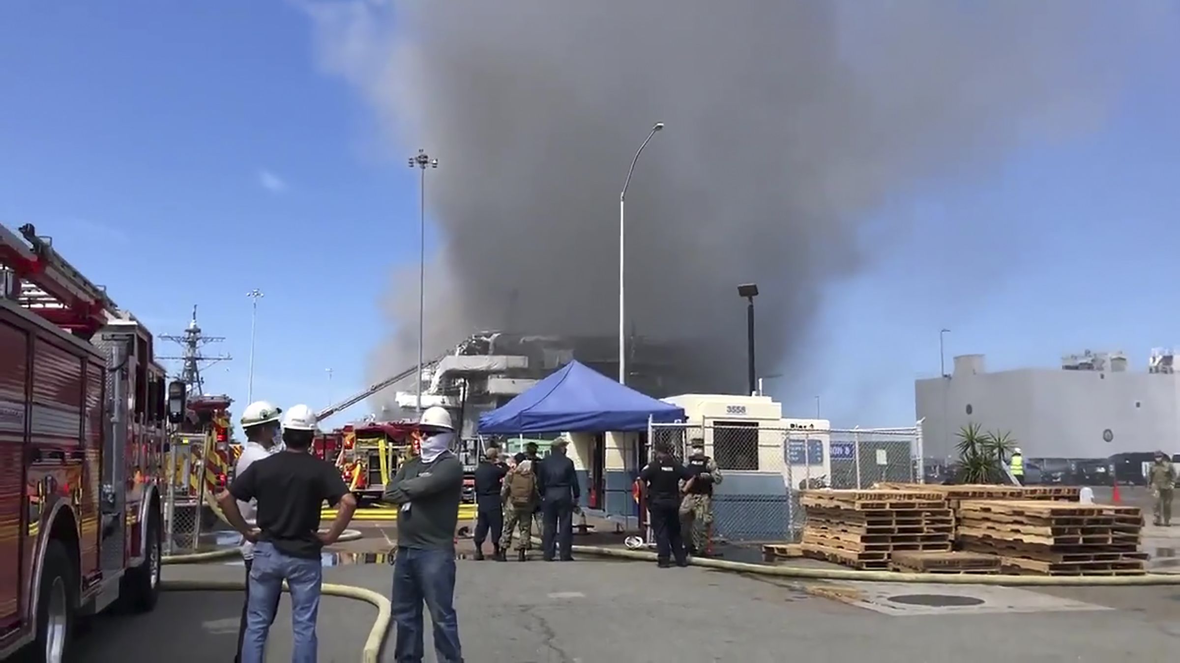 Über San Diego war eine große, dunkle Rauchwolke zu sehen. Die Ursache der Explosion war zunächst unklar. Der Brand war am Sonntagmorgen kurz vor 9.00 Uhr (Ortszeit) auf der "USS Bonhomme Richard" gemeldet worden, einem 255 Meter langen amphibischen Mehrzweckangriffsschiff, das zu Routinewartungsarbeiten im Hafen lag.