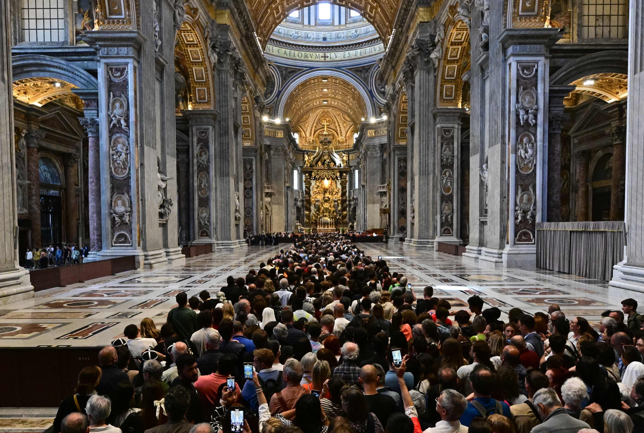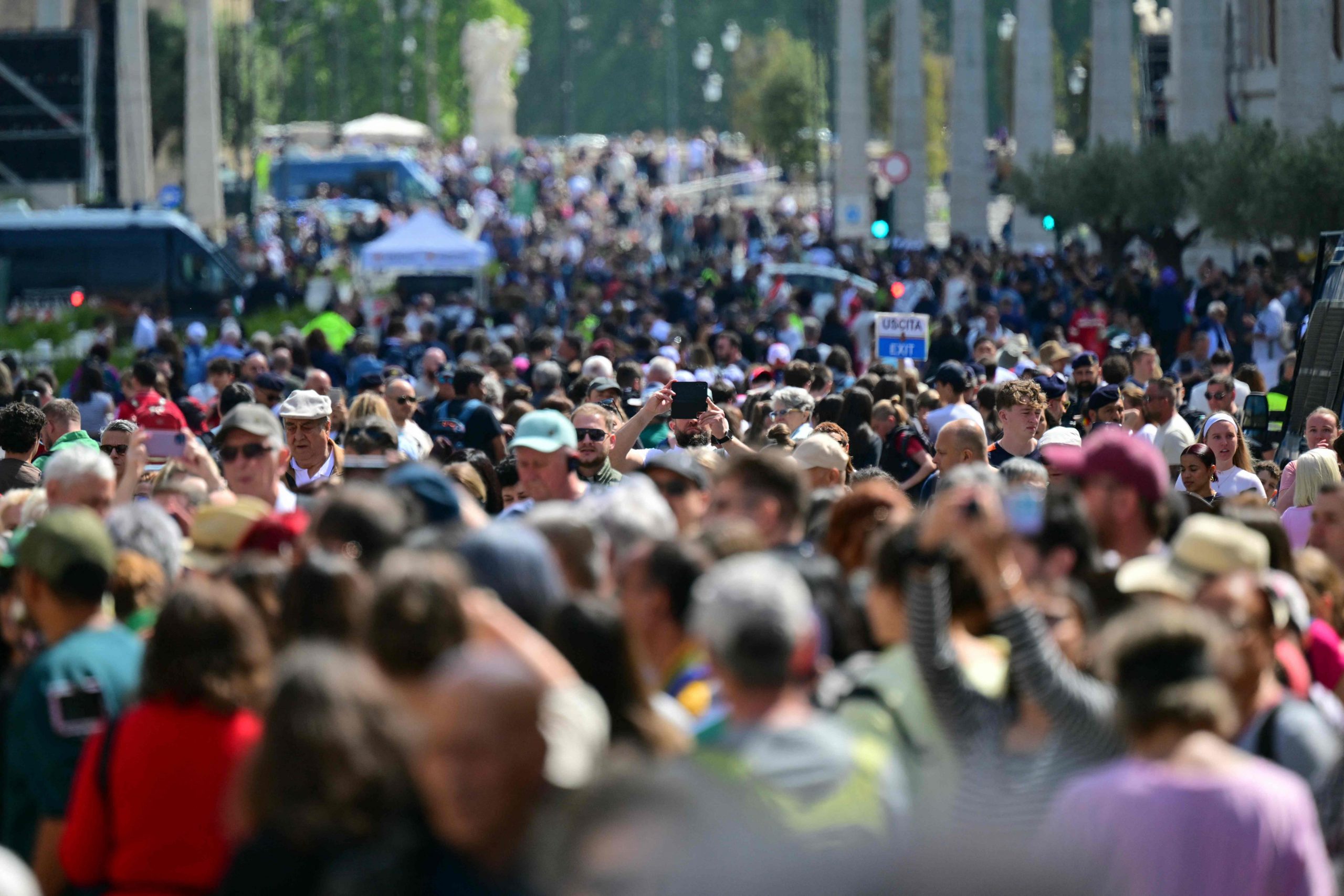 Geduldig warten die aus der ganzen Welt angereisten Pilger, um die Basilika zu betreten, in der der Leichnam des verstorbenen Heiligen Vaters aufbewahrt ist. Wegen der strengen Sicherheitsvorkehrungen müssen sich Gläubige auf ein stundenlanges Warten gefasst machen.