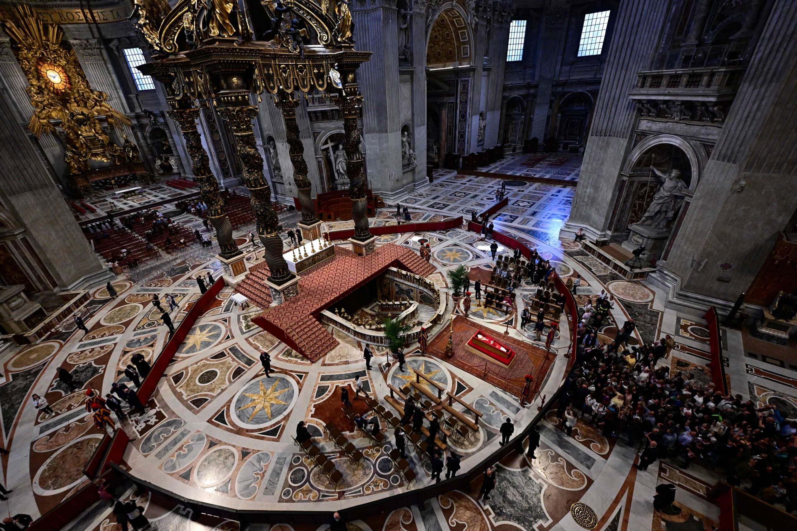 Seit der Früh waren die U-Bahn-Stationen unweit des Vatikans überfüllt. Die Menschen beteten den Rosenkranz und sangen, während sie auf den Zugang in die Basilika warteten. Die Menschen schlenderten still am Leichnam des Papstes vorbei. Viele wirkten ergriffen, einigen liefen die Tränen über das Gesicht.