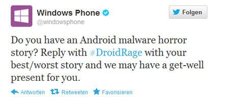 Ungeachtet dessen, dass sie bereits vor einem Jahr in einem PR-Desaster endete, hat das Windows-Phone-Team seine #DroidRage-Kampagne auf Twitter wiederbelebt. Und prompt drehen die User den Spieß erneut um, die Timeline ist voll mit #WindowsRage-Tweets.