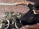 Der Texaner Jackie Bibby hat 45 Minuten mit 87 Klapperschlangen in einer durchsichtigen Badewanne verbracht und damit einen Eintrag im "Guinness Buch der Weltrekorde" erreicht.