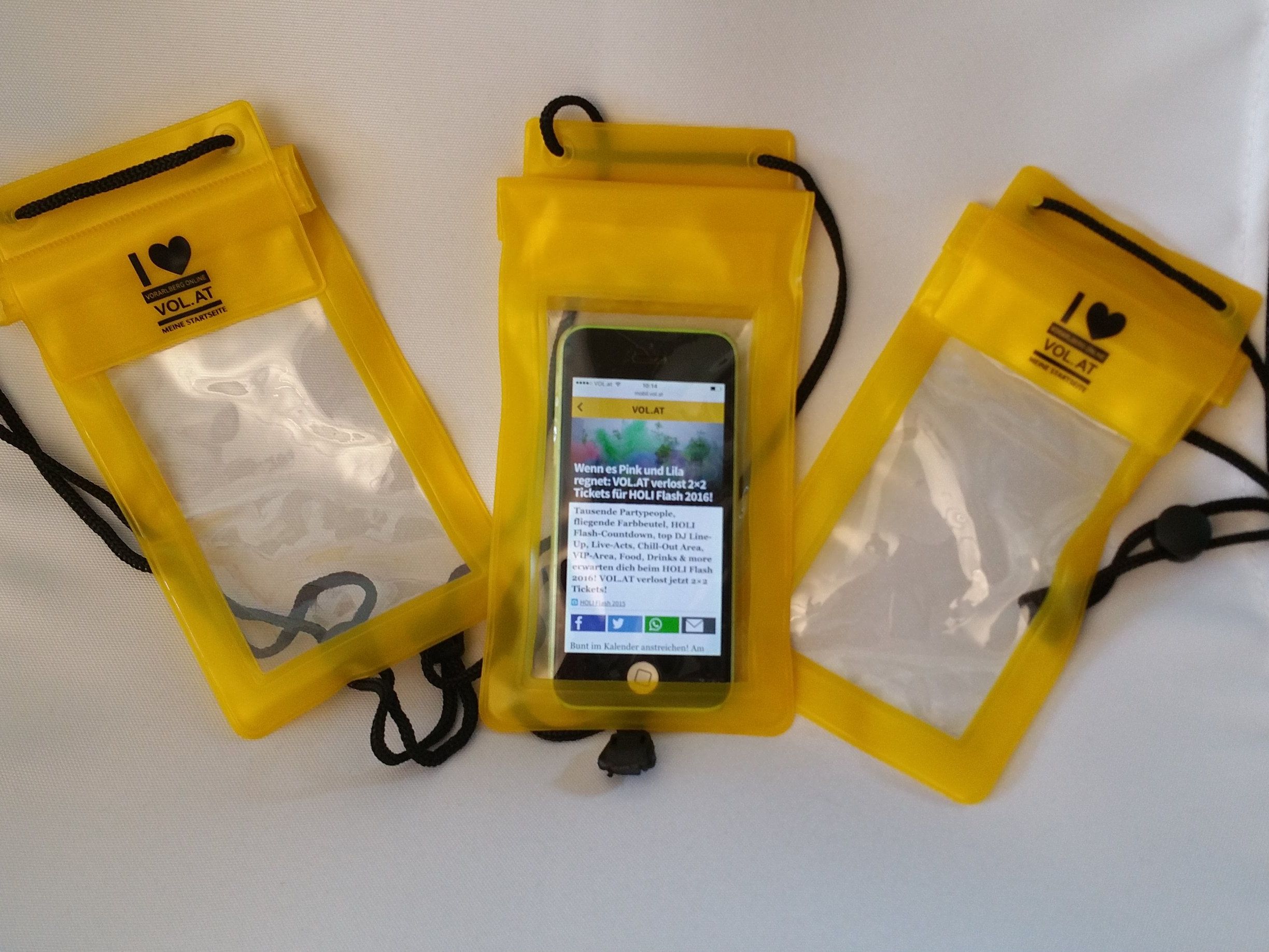 Wer kennt es nicht: Man wird bei einem Spaziergang plötzlich von strömendem Regen überrascht, hat jedoch weder einen Schirm noch eine Tasche dabei, welche nicht auch dein Telefon schützen kann. Oder man befindet sich am Meer und der Sand klebt nicht nur auf der Haut sondern auch am Telefon. Mit den praktischen Schutzhüllen von VOL.AT sind all diese Situationen kein Problem mehr. Denn diese schützen dein Smartphone vor Feuchtigkeit und zahlreichen weiteren Einflüssen, von welchen das Gerät Schaden nehmen könnte. Die 3-fache Verschließung macht sie optimal wasserdicht, und trotz Rundumschutz lässt sich dein Telefon einwandfrei bedienen.