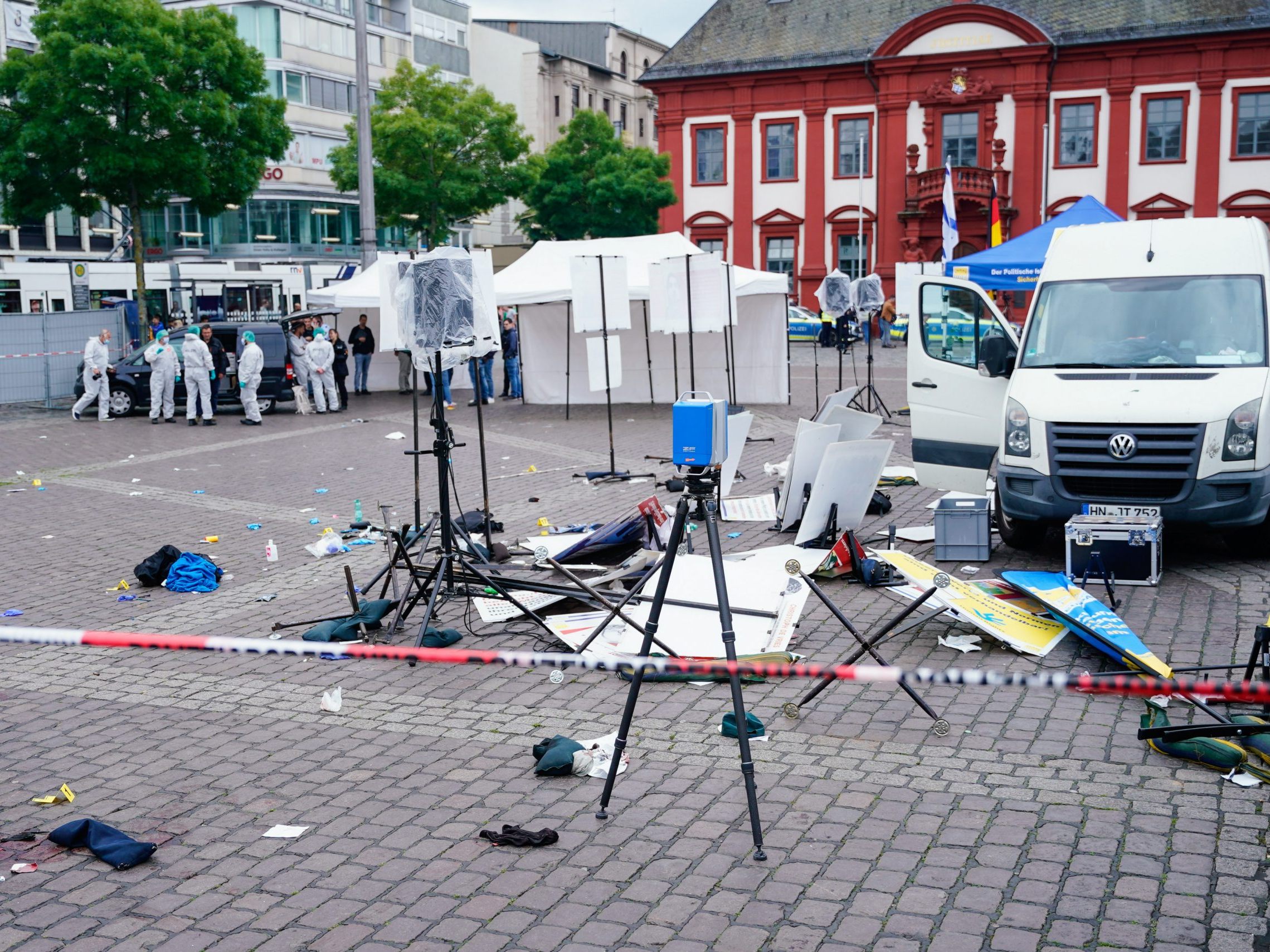 Der Täter hatte am Freitagvormittag Teilnehmer einer islamkritischen Kundgebung auf dem Mannheimer Marktplatz angegriffen und sechs Menschen verletzt, darunter den Polizisten. Laut dem LKA-Sprecher handelt es sich bei allen Verletzten außer dem Beamten um Teilnehmer der Kundgebung. Ob sie auch Mitglieder von Pax Europa sind, sei noch unklar.