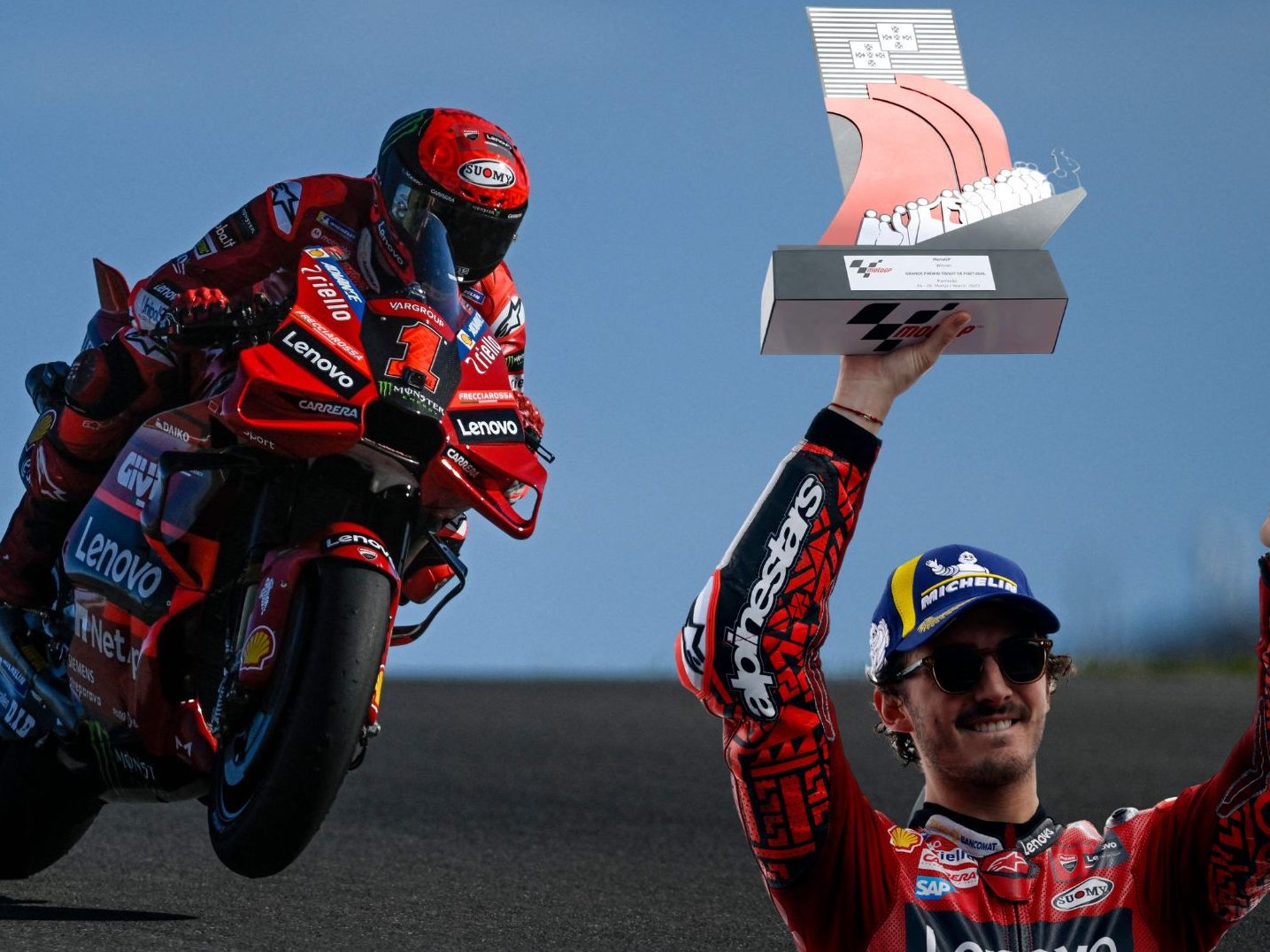 Der Sprint-Sieger vom Samstag war auch beim Grand Prix am Sonntag in Portugal auf seiner Ducati nicht zu schlagen und siegte vor dem Spanier Maverick Vinales (Aprilia) und Marco Bezzecchi (Ducati) aus Italien. Die KTM-Piloten Brad Binder und Jack Miller fuhren nach 25 Runden auf den Plätzen sechs und sieben über die Ziellinie.