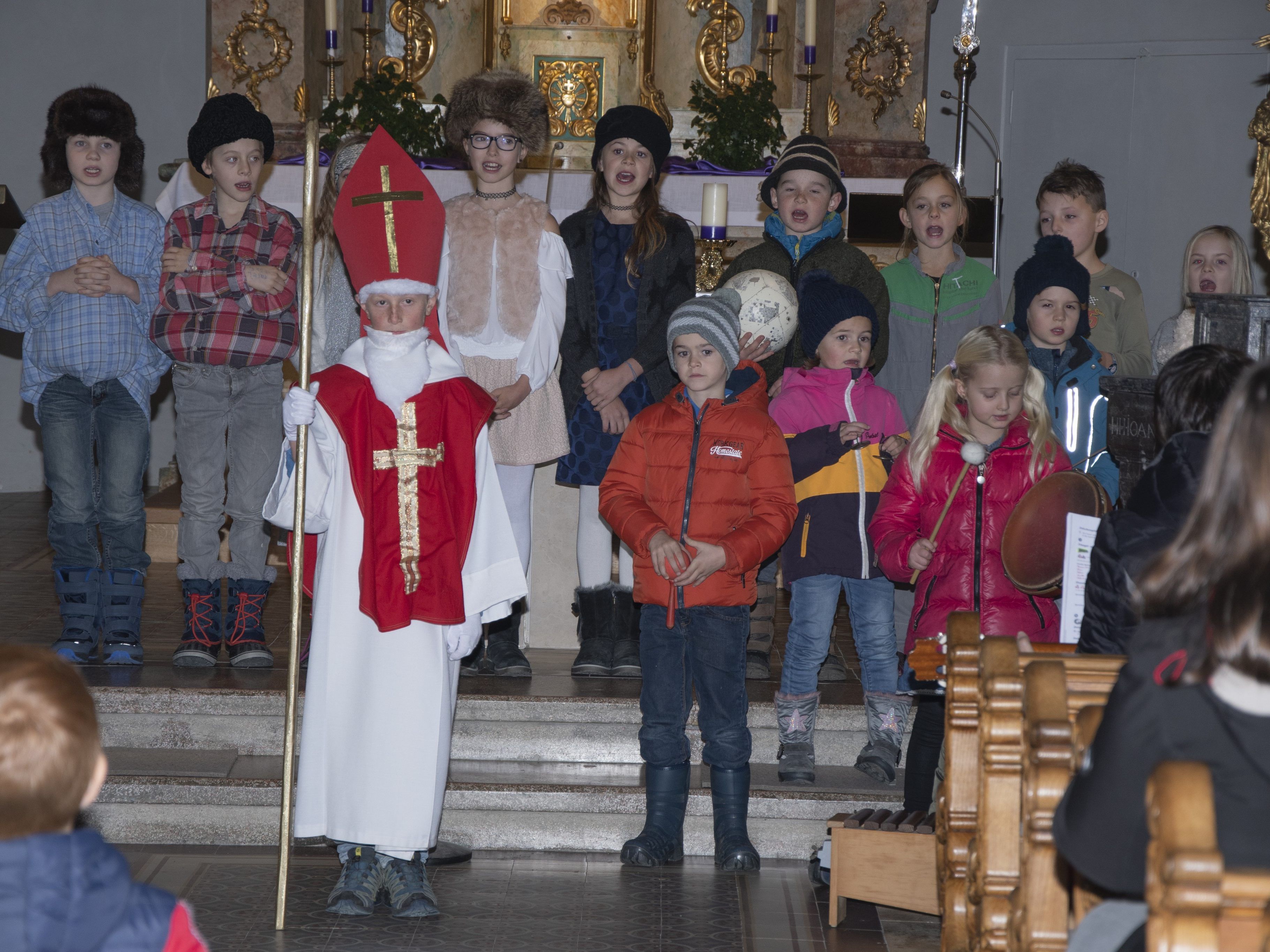 Schoppernau. Zahlreiche Besucher, vor allem viele junge Familien mit Kindern, waren in die Pfarrkirche Schoppernau gekommen um sich an dem Mini-Musical „Der Mann mit Bart und Bischofstab“ zu erfreuen. Die Kinder der Volksschule Schoppernau hatten in den vergangenen Wochen unermüdlich für ihre Veranstaltung Texte auswendig gelernt, Lieder einstudiert und Kostüme vorbereitet. Bei der mit Aufregung erwarteten Aufführung standen sich die Bürger der beiden Gemeinden „Überfluss“ und „Bettelarm“ gegenüber und der heilige Nikolaus trat vorbildlich mit großer Achtsamkeit und Nächstenliebe den Menschen in Not gegenüber.