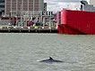 Ein junger Wal hat sich in den Hafen von New York verirrt und tummelte sich am Mittwoch arglos in einem Wasserbecken in der Nähe eines industriell belasteten Kanals.