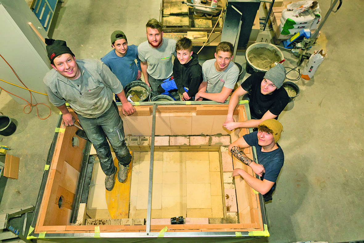 Neun Lehrlinge arbeiten am Ofen
