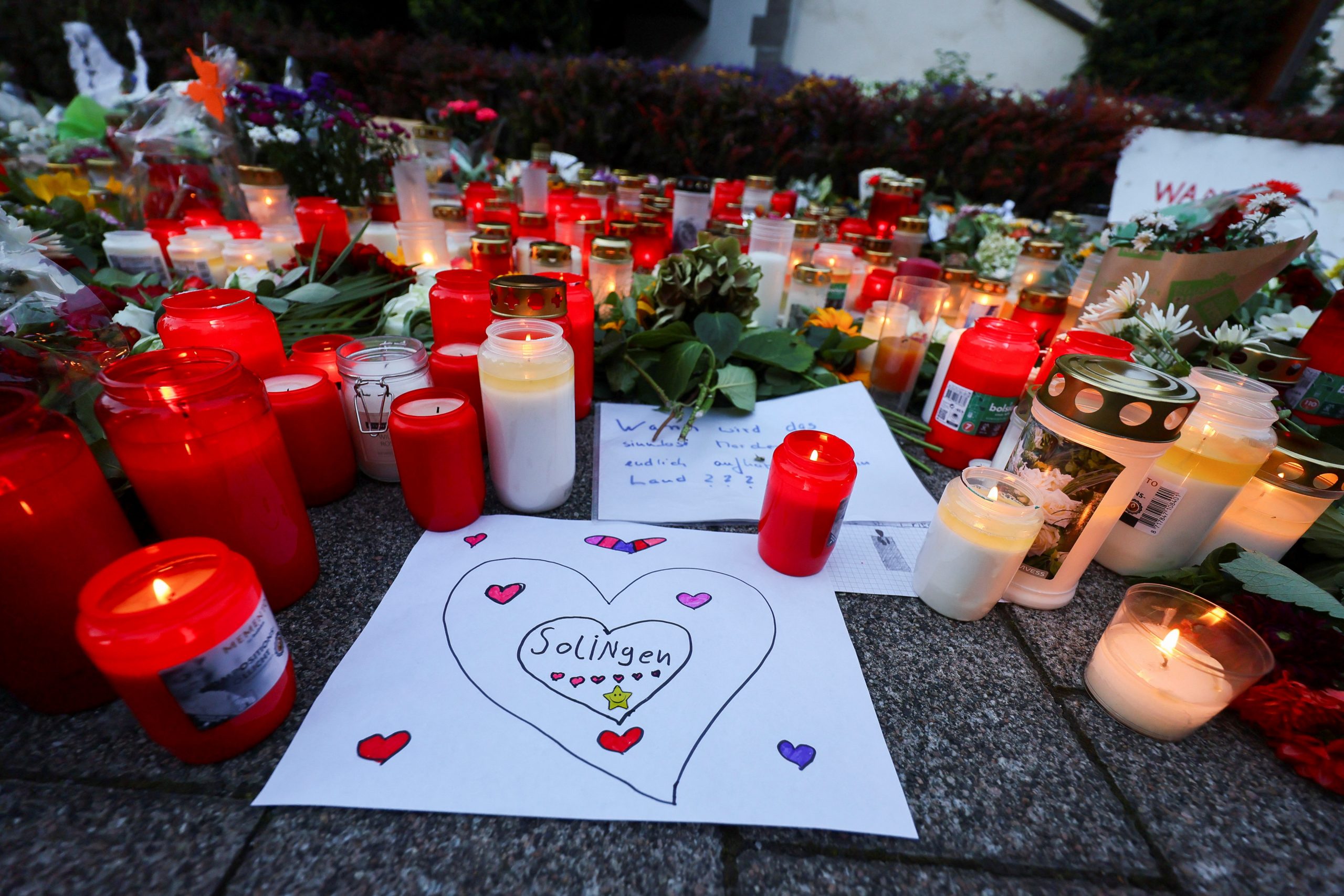 Bilder: Menschen haben am Tatort in Solingen Kerzen niedergelegt