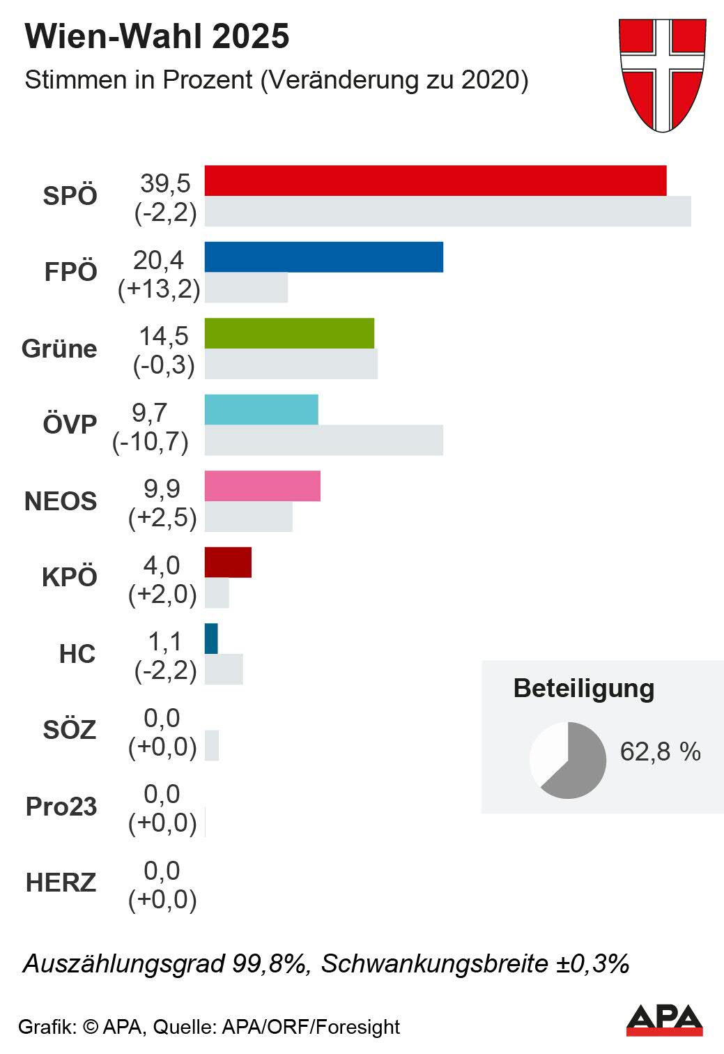 Strache hatte mit seiner Partei bei der Wien-Wahl Ende April auch für den Gemeinderat kandidiert. Hier verfehlte er den Einzug aber klar. Mit 1,1 Prozent lag er sogar deutlich unter dem Ergebnis von 2020. Vor fünf Jahren war er auf mehr als 3 Prozent Stimmanteil gekommen, die Fünf-Prozent-Hürde für den Einzug ins Stadtparlament aber auch nicht geschafft.