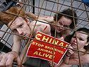 Bei Temperaturen unter null Grad sind am Mittwoch Tierschutzaktivisten vor der chinesischen Botschaft in Wien völlig nackt in einen überdimensionalen Käfig geklettert, um gegen die Massenproduktion von Pelz in China zu protestieren.