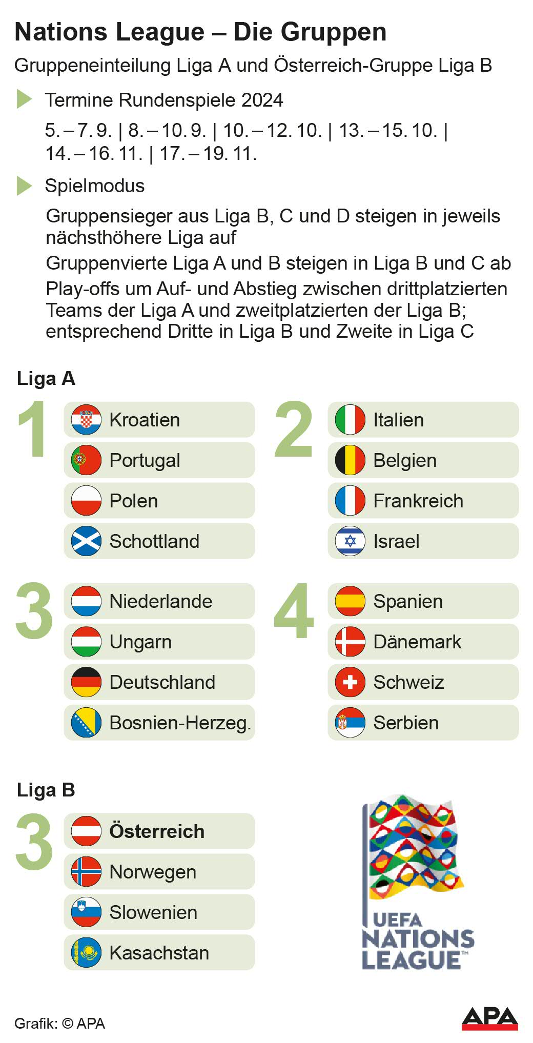 Gruppeneinteilung Liga A und …Österreich-Gruppe Liga B, Termine Gruppenspiele ©APA