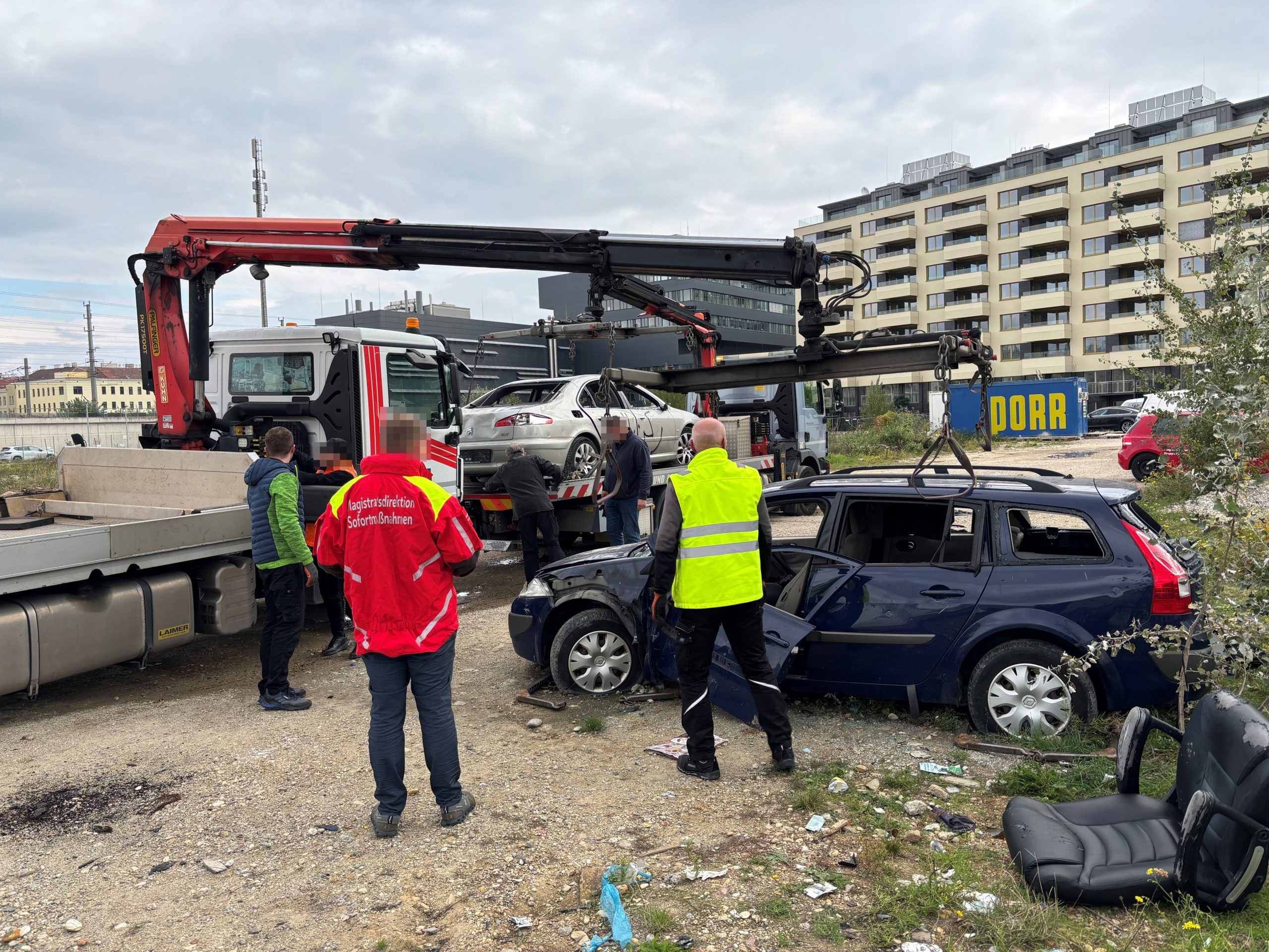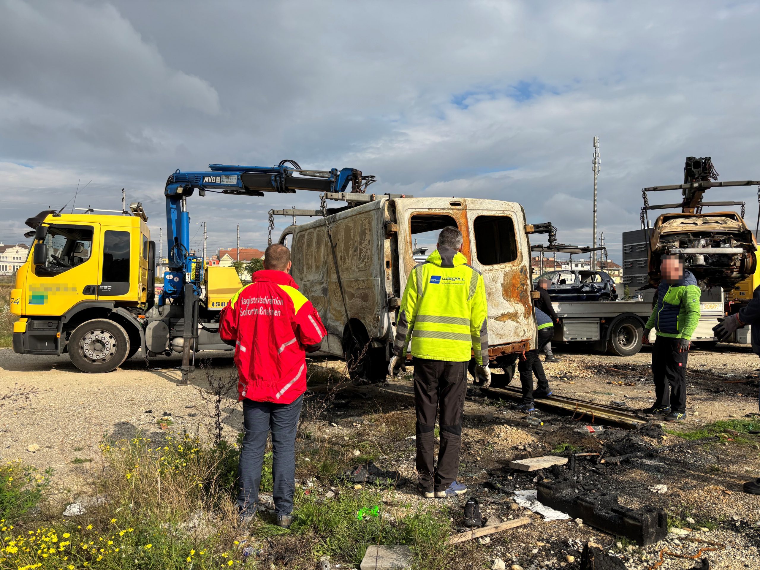 In a derelict state, several abandoned junk cars were located on an ÖBB property in Vienna-Favoriten – directly next to a residential area and a children's playground. Following a tip-off, the Immediate Measures Group, together with MA 48 and ÖBB, took action on Wednesday.