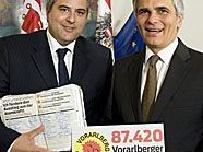 Landeshauptmann Herbert Sausgruber hat heute, Dienstag die Anti-Atom-Unterschriften an Bundeskanzler Werner Faymann und Umweltminister Niki Berlakovich im Bundeskanzleramt übergeben.