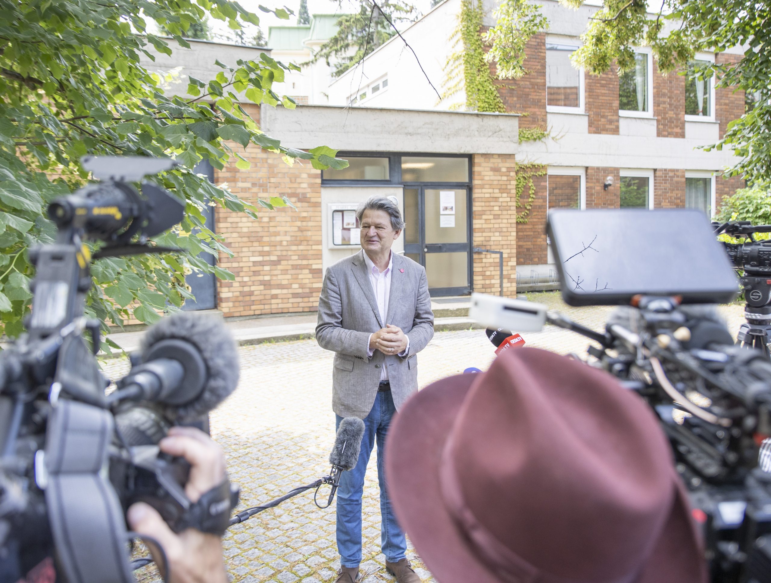 Helmut Brandstätter, Spitzenkandidat der NEOS, gab am Wahlsonntag im Kreise seiner Familie in Wien-Pötzleinsdorf seine Stimme für die EU-Wahl ab und zeigt sich zuversichtlich über das Interesse an einer vernetzten Europa-Vision.