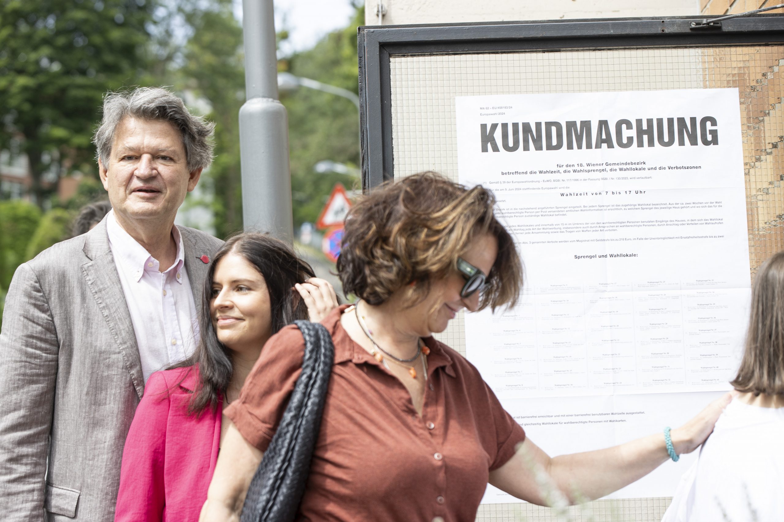 Der Reigen der Stimmabgaben zur EU-Wahl hat sich am Vormittag dem Ende zugeneigt. Als einer der letzten Spitzenkandidaten war Helmut Brandstätter an der Reihe, der im Kreise seine Familie in Wien-Pötzleinsdorf zur Urne schritt und Zuversicht ausstrahlte.