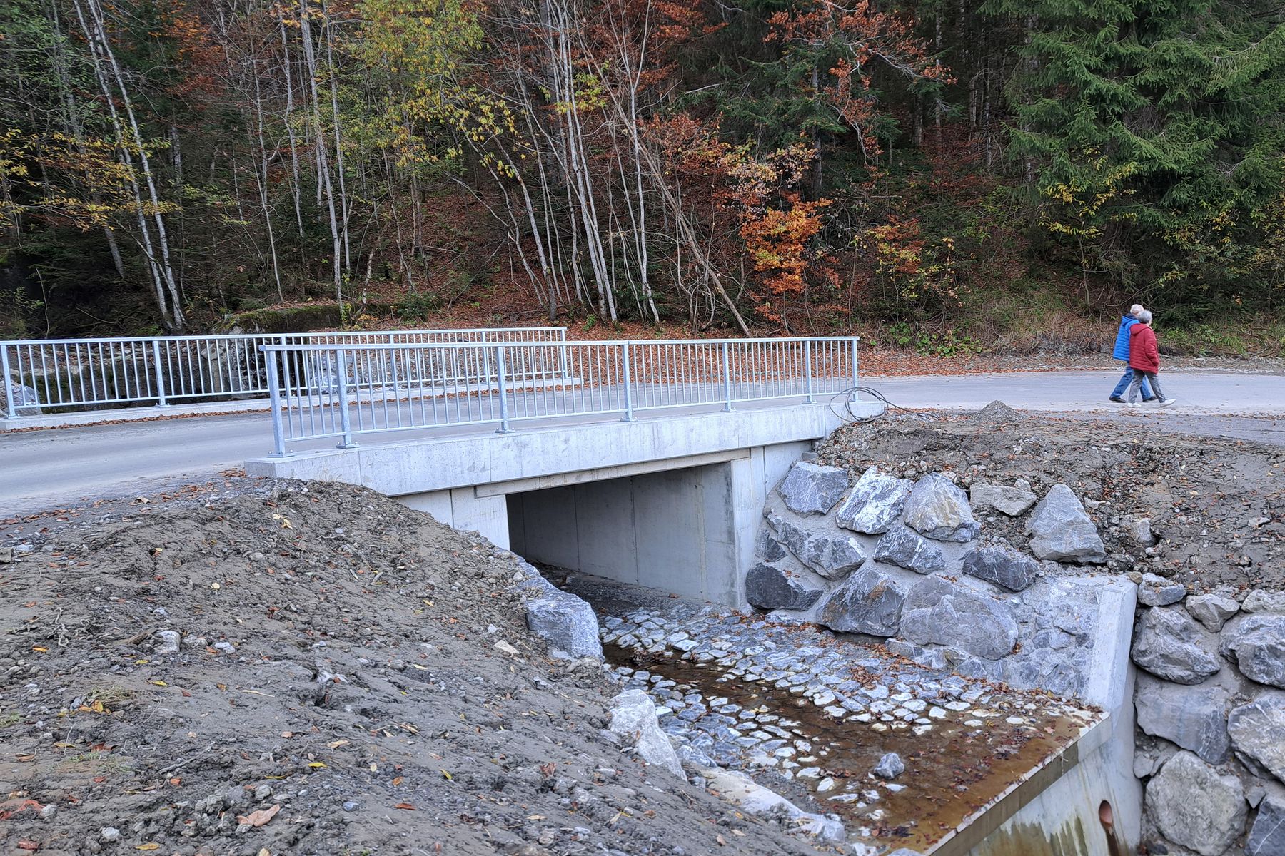 Die Erneuerung der Ebnebachbrücke im Dornbirner Bergdorf Ebnit ist abgeschlossen. Die Brücke, die den Bruderbach überquert, befindet sich auf halber Strecke zwischen dem Ortskern von Ebnit und der Alpe Heumöser.