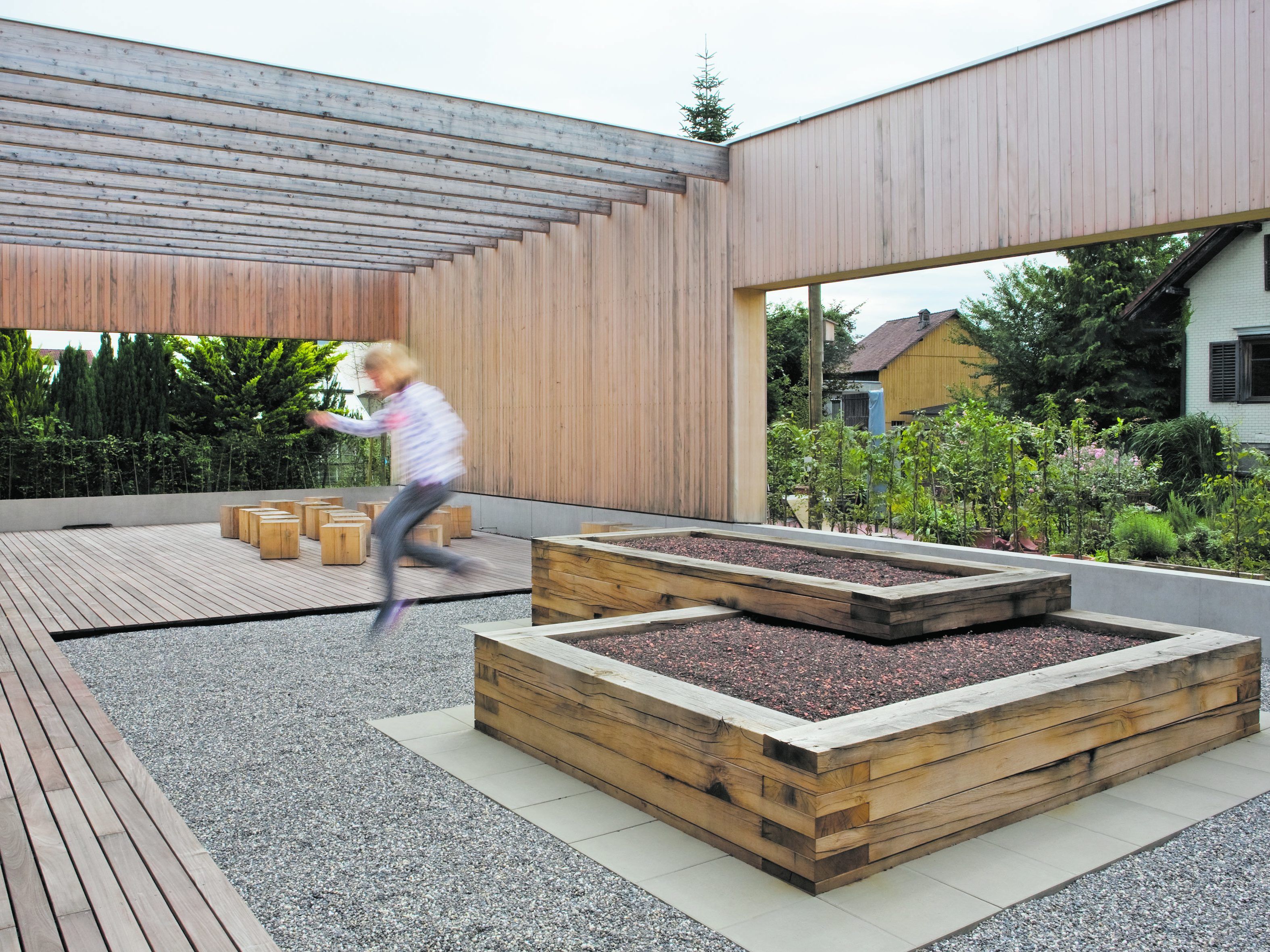 Für neue Schulhäuser, die moderne Unterrichtsformen unterstützen und ihren Gemeinnutz durch öffentlich zugängliche Räume und Außenanlagen erhöhen, gibt es noch keine verbindlichen Standards. In Höchst wurde nun auf ökonomische Weise eine sehr großzügig gedachte Möglichkeit realisiert.