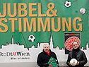 Wiens Einfahrtsstraßen sind ab sofort mit neuen Tafeln im EURO-Design dekoriert. Auf den fünf Haupteinfahrtsstrecken passieren Wien-Besucher je drei Tafeln mit den Slogans "Jubel und Stimmung", "Helden und Tor" und "Team und Geist".