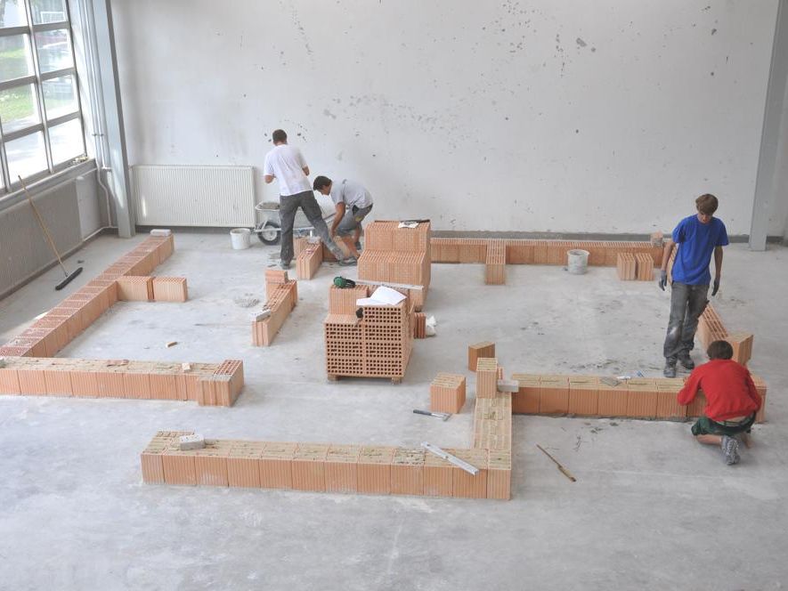 Diese nun vierte Generation an Übungshäusern der Schule hat, dank zahlreicher Sponsoren aus der Bauindustrie, technisch einen Stand erreicht, der kaum noch zu überbieten ist. Österreichweit ist dieses Projekt einzigartig. Nachdem die Grundrisse in der Halle vermessen sind, werden nun die ersten Mauern in verschiedensten Technologien errichtet. Die Wände bestehen aus modernsten Mauerwerkstypen, die sich technisch auch hinsichtlich Wärmedämmung unterscheiden.