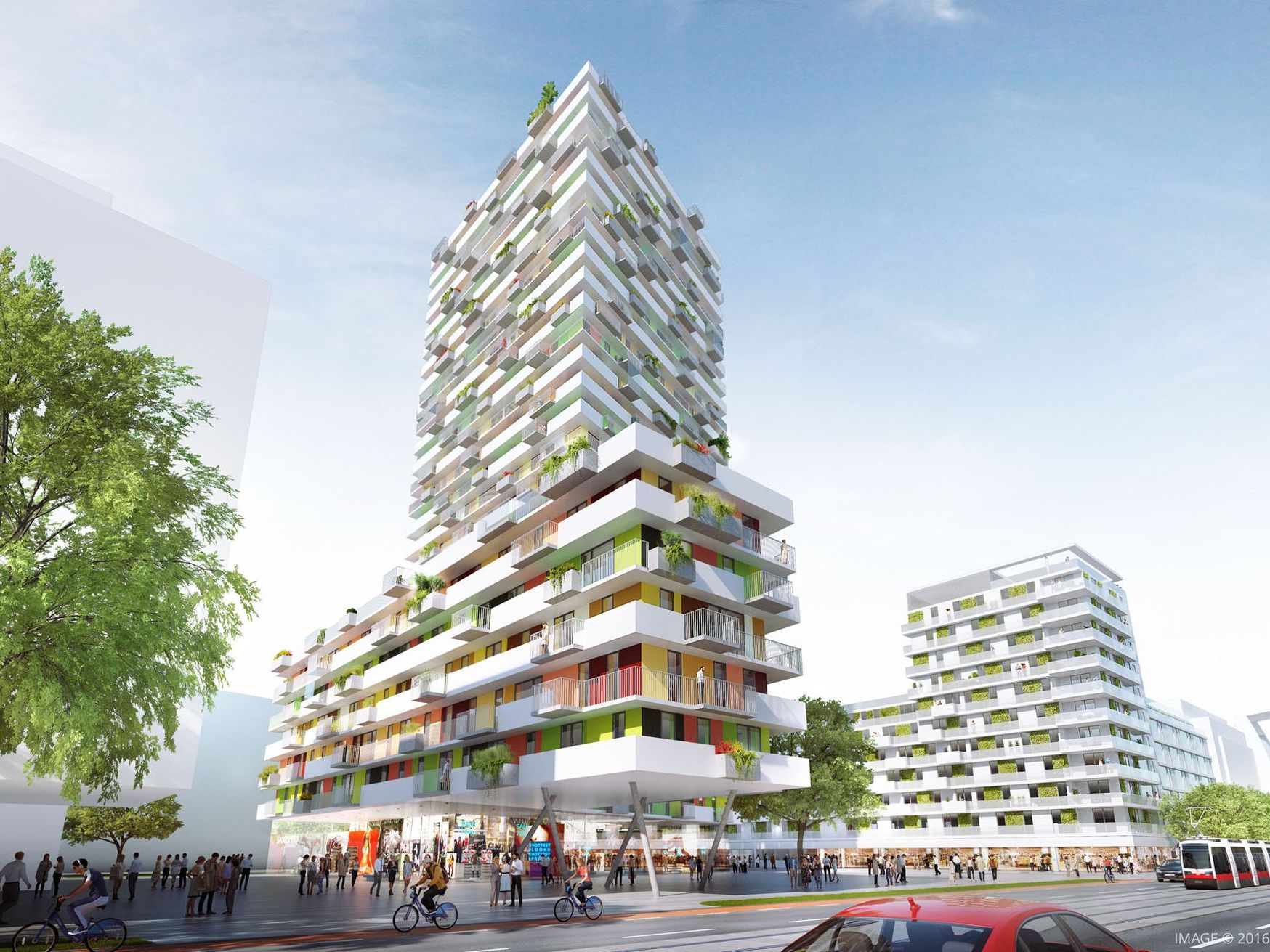 Die beiden Wohnhäuser, eines davon als Hochhaus geplant, werden zum Großteil aus geförderten Wohnungen von etwa 40 bis 90 Quadratmetern und SMART-Wohnungen bestehen. Gemeinschaftsräume, Kinderspielplätze, Platz für Urban Gardening und Balkone werden die Wohnräume abrunden. Der Baubeginn ist für Anfang 2018 geplant.