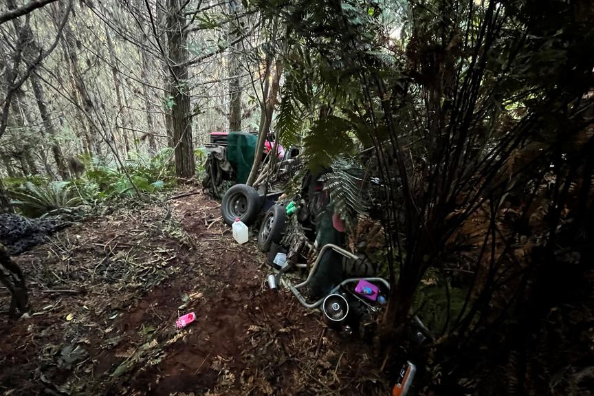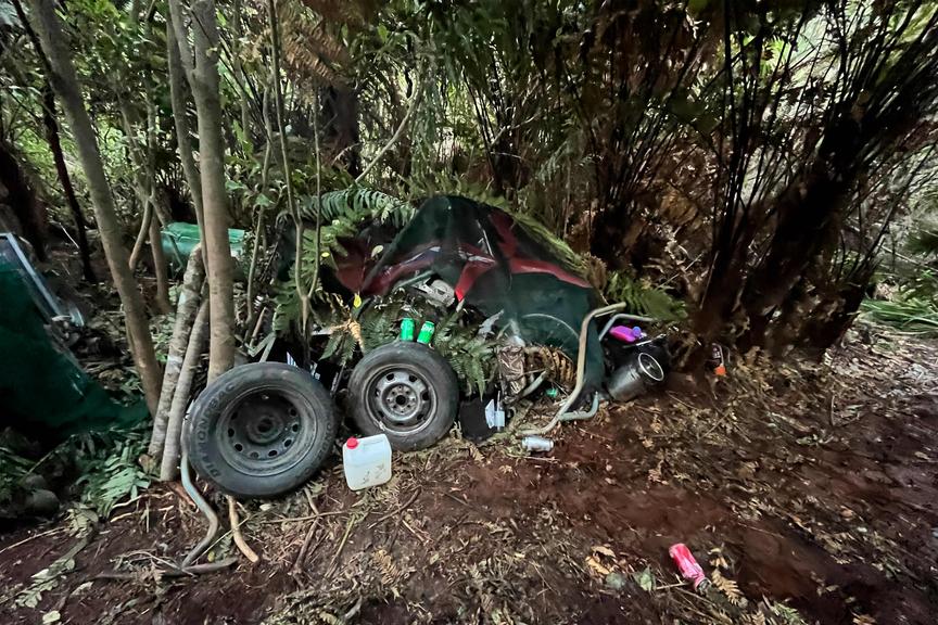 Die Fotos entstanden in den dichten Wäldern des Bezirks Waitomo. Zu sehen sind unter anderem Autoreifen und ein Wasserkanister. In dem Lager hatten die Behörden am Montag zwei der Kinder nach fieberhafter Suche gefunden.