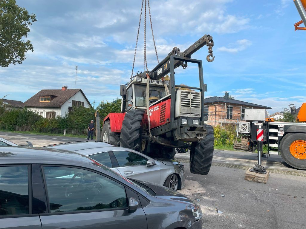 Traktor rammte in Lustenau sechs Autos und “landete” auf Mercedes
