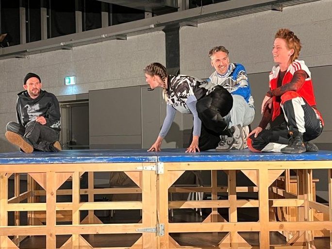 22.10.2025 Café Fuerte erzählt Kläbers Kinderbuchklassiker „Die rote Zora“ mit vier Köpfen, einer Holzplattform und viel Fantasie.
