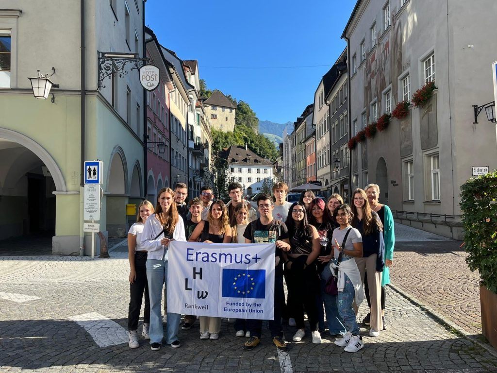 6.10.2023 Schülerinnen und Schüler der 3B der HLW Rankweil heißen spanische Erasmus+-Freunde willkommen.