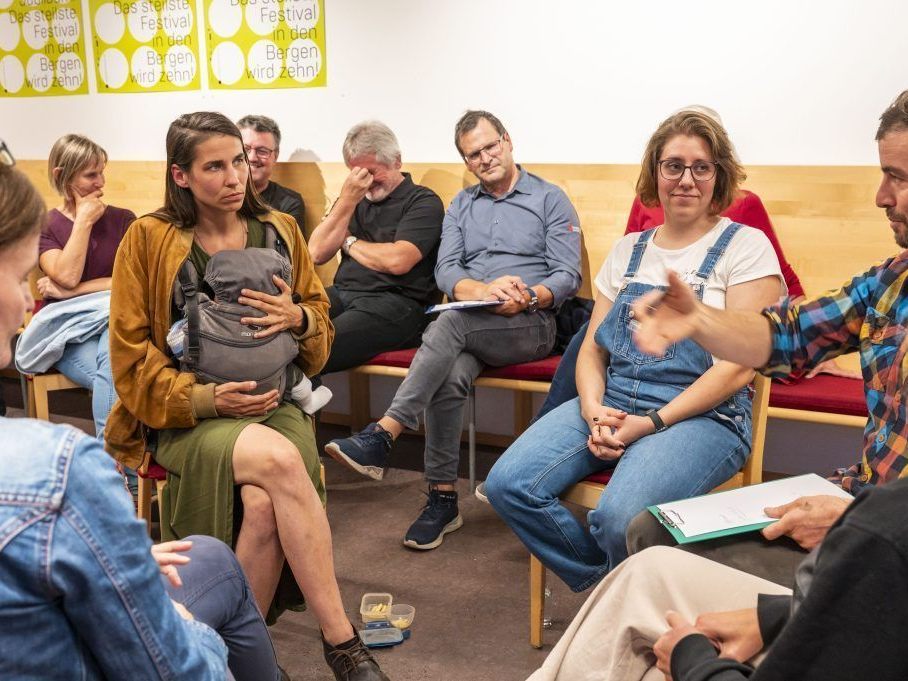1.09.2023 Beim Wirtshausgespräch im Gasthaus Falva in Blons diskutierten im Rahmen des Walserherbstes rund 20 Leute über Politik, Engagement und Care-Arbeit.