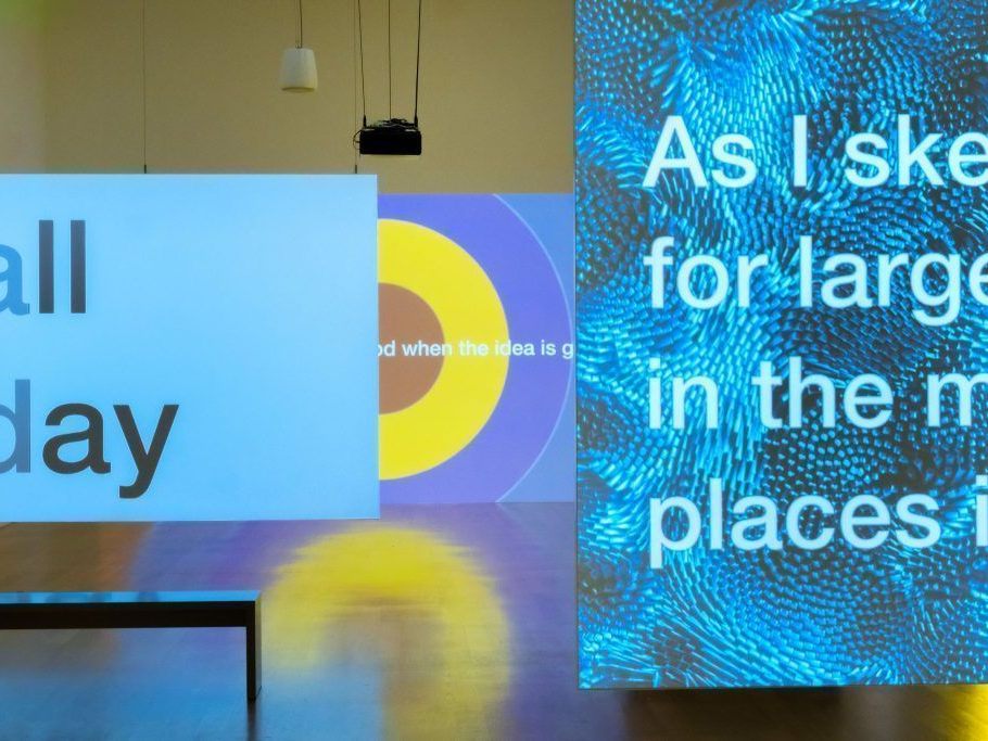 25.09.2025 Die Ausstellung präsentiert Leuchtkästen sowie Schrift- und Videoinstallationen.