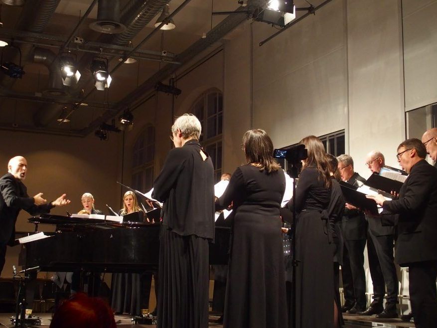 6.03.2023 Der Kammerchor Feldkirch unter Benjamin Lack und Anna Adamik am Klavier begeistern mit neuen Aufgaben.