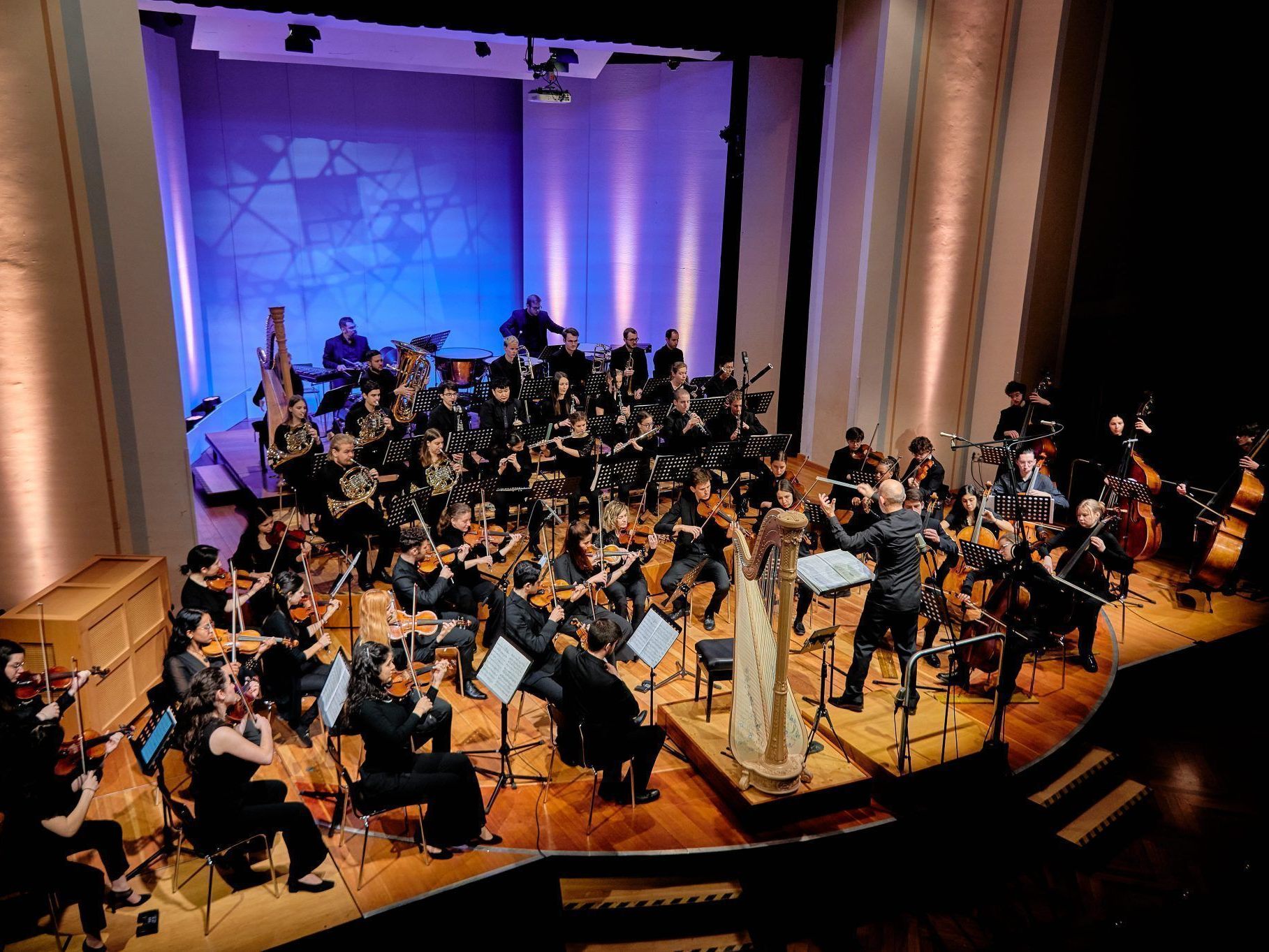 24.01.2023 Begeisternde Matinee des Hochschulorchesters mit dem Harfensolisten Viktor Hartobanu.
