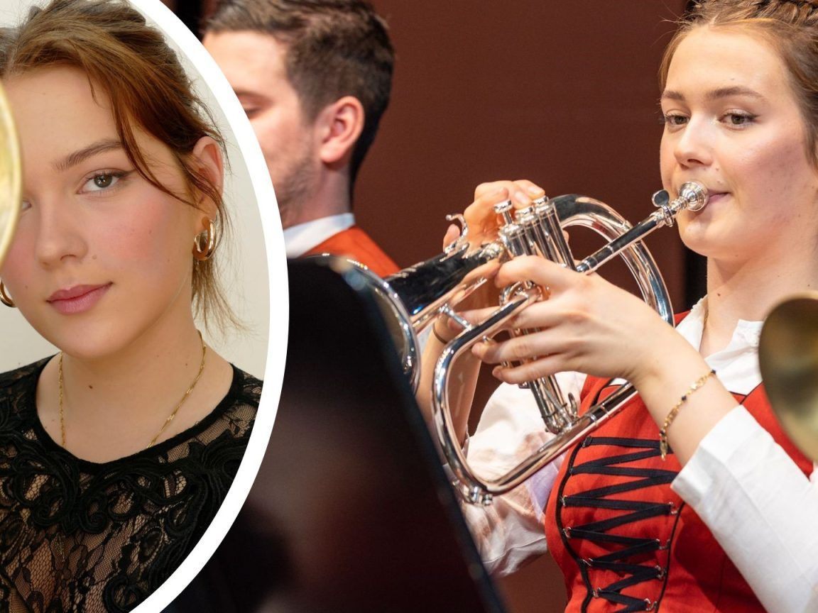 31.12.2022 Die junge Trompeterin steht als Solistin beim Silvester- und Neujahrskonzert des Jugendsinfonieorchesters Dornbirn auf der Bühne.