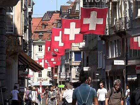 26.06.2019 St. Gallen! Zentrum der Ostschweiz. Bekannt für seine Universität und für seine Altstadt. Seit 1983 gehört die Altstadt, also der Bezirk rund um die Stiftskirche zum UNESCO Weltkulturerbe. Der Fahnenschmuck ist noch vom Nationalfeiertag der Schweiz, am 1. August.