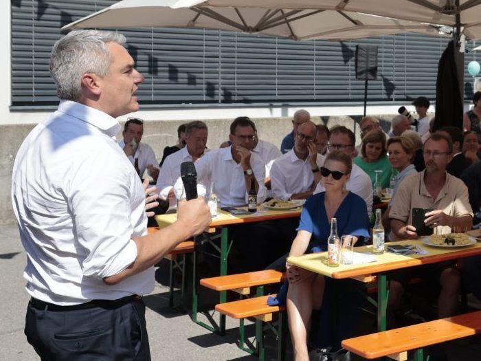 29.08.2024 Bundeskanzler Karl Nehammer war gestern in Vorarl­berg, um die Werbetrommel für seinen Wahlkampf zu rühren.