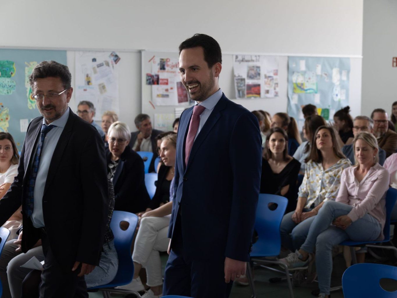 16.05.2025 Bei der Eröffnungsfeier am Gymnasium Schoren gab die NEUE Schülerinnen und Schülern vor Ort die Möglichkeit, ihren Anliegen und Wünsche an Bildungsminister Christoph Wiederkehr heranzutragen.