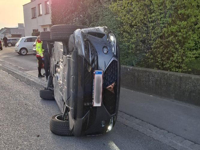 11.04.2025 Auto in Höchst bei Unfall auf die Seitenlage gelegt.