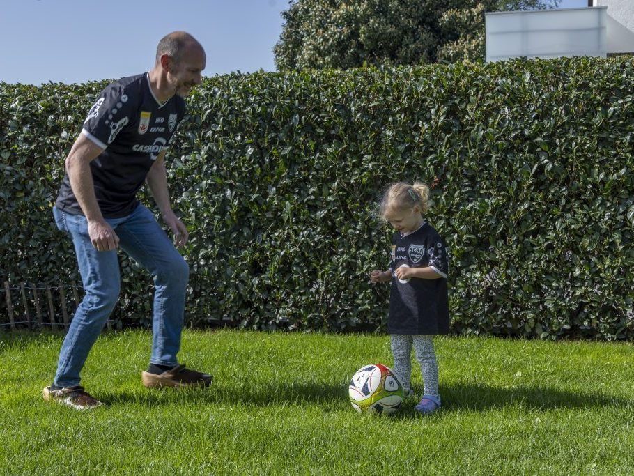 11.04.2024 Zusammen mit ihrem Papa Ulrich Bachmeier gehört die Dreijährige zu den treuesten Fans des Cashpoint SCRA Altach. Für das Derby hofft der Altacher auf einen 3:1-Sieg.