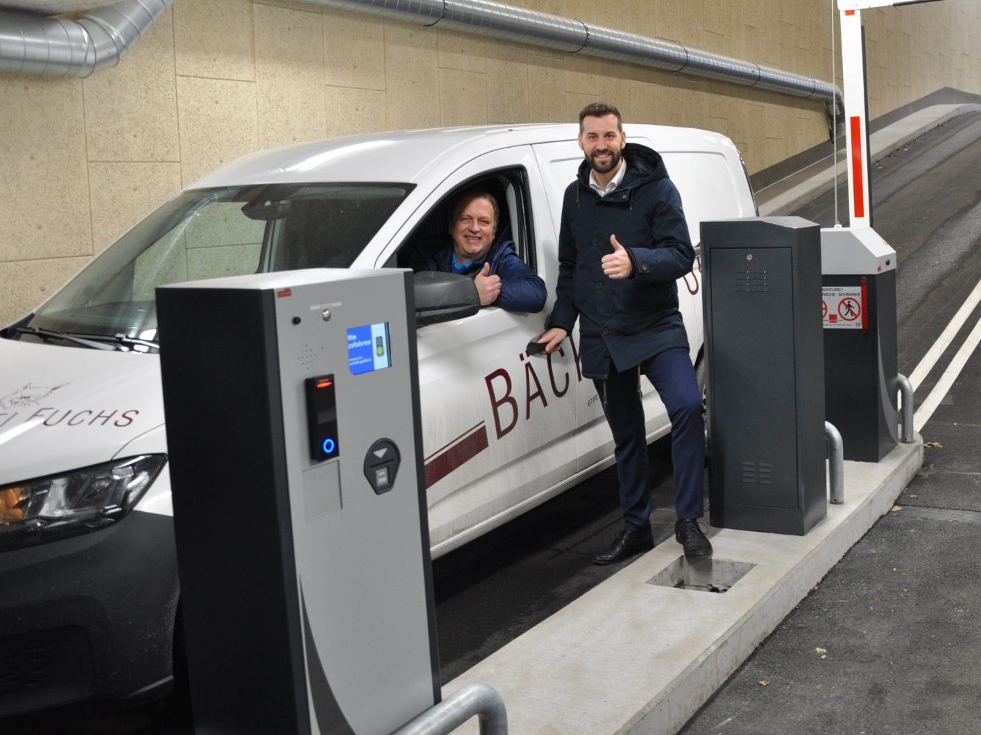 3.02.2023 WIGE-Obmann Hanno Fuchs und Bürgermeister Simon Tschann eröffnen Parkgarage Zentrum in Bludenz.
